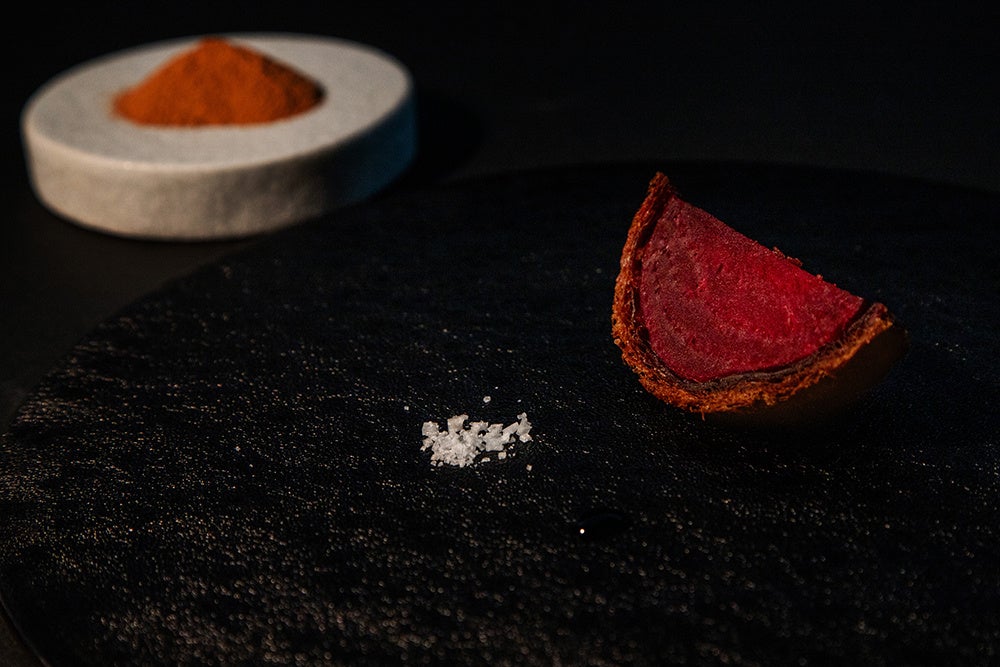 レストランという場所では、まず一番に、料理を味わいながら食事を楽しんでいただきたいと思っています。僕にとって料理とは、それぞれの人が純粋に楽しさやおいしさ、美しさというものを感じられることが根本であり、循環や調和といったテーマに繋がっていくものだと考えています。今回のポップアップディナーでは、自分の代表的なメニューでもある愛媛の赤土を使って調理するビーツの一皿をはじめ、相模由来の食材を中心に好奇心を刺激するような料理で新たな食体験をご提供できればと思っています。まずはお皿の上の料理を自由に楽しんでみてください。
