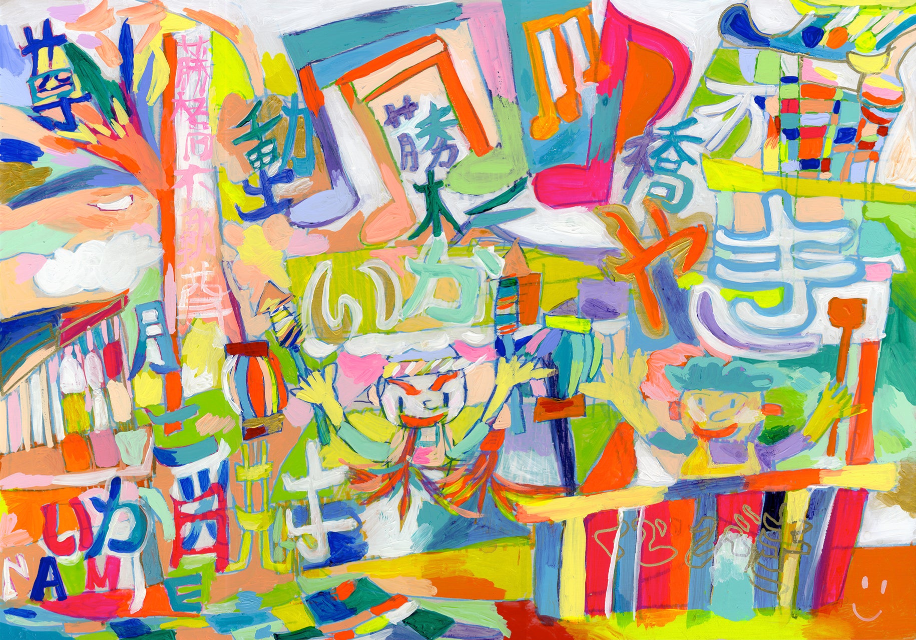 生きることは描くこと。家族と世界各地を旅するなかで目にした景色を、光と色彩に溢れた独自の世界観で描き出す。マジカルとも評される色彩感覚と感受性を持ち、何百色もの絵の具から瞬時に色を選んで描き上げる。そのアートワークは国内外で高い評価を得ており、京都上御霊神社と京都御所内白雲神社の絵馬所には、大作絵馬が奉納されている。
