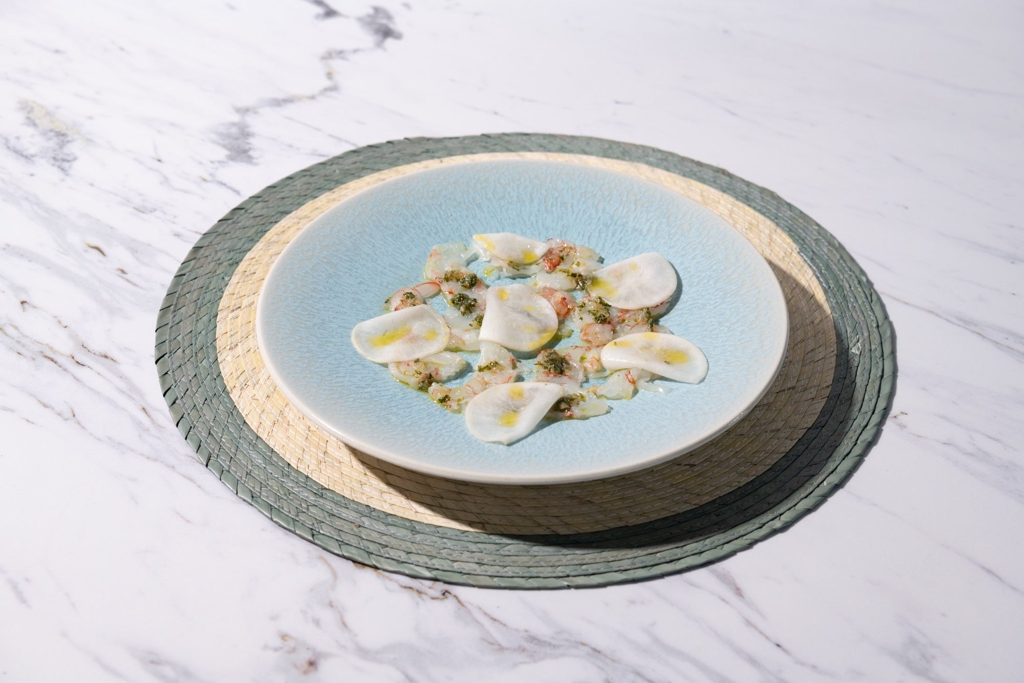 さらに、タパスメニューを12種類追加。エアバッグに見立てたピザ生地の上にイベリコ豚の生ハムをたっぷり乗せた〈XIRINGUITO Escribà〉を象徴する「イベリコ豚の生ハムとエアバッグ」、酸味を効かせた「フレッシュマッシュルームのサラダ」、旨味を凝縮させた爽やかな「ヒラメのセビーチェ」、柔らかでみずみずしい「赤海老とかぶのカルパッチョ」をはじめとしたスペイン料理をご用意。