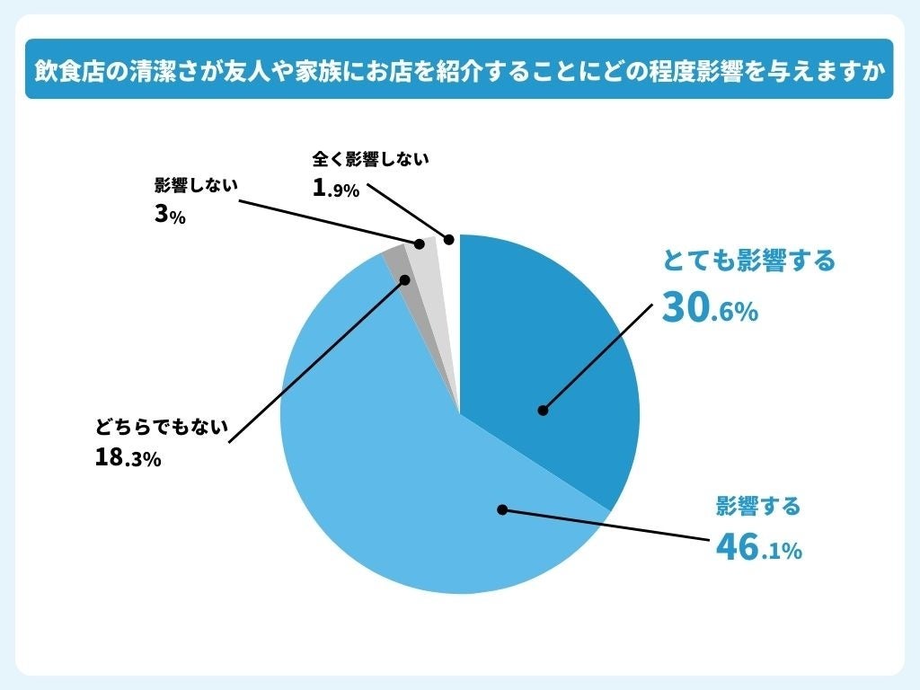 ・76.7%が店の清潔さで友人・家族へ紹介するかどうかに影響があると回答