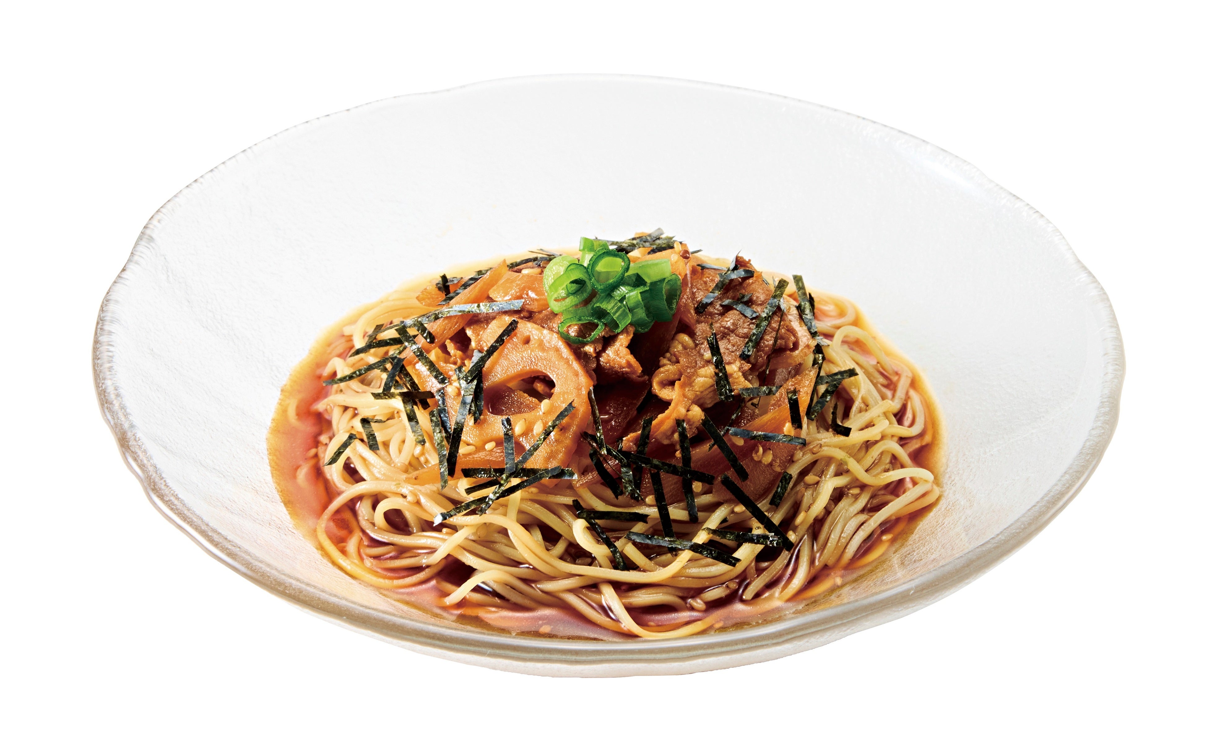 和風の味わい「豚肉と根菜の甘辛涼風麺」