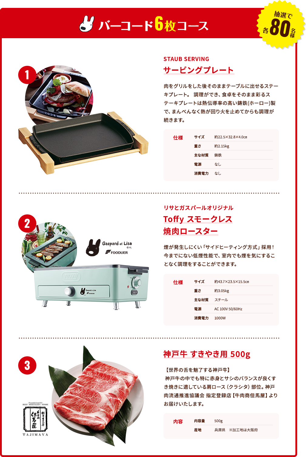 【バーコード 6枚コース】 抽選で各80名様 (合計 240名様)