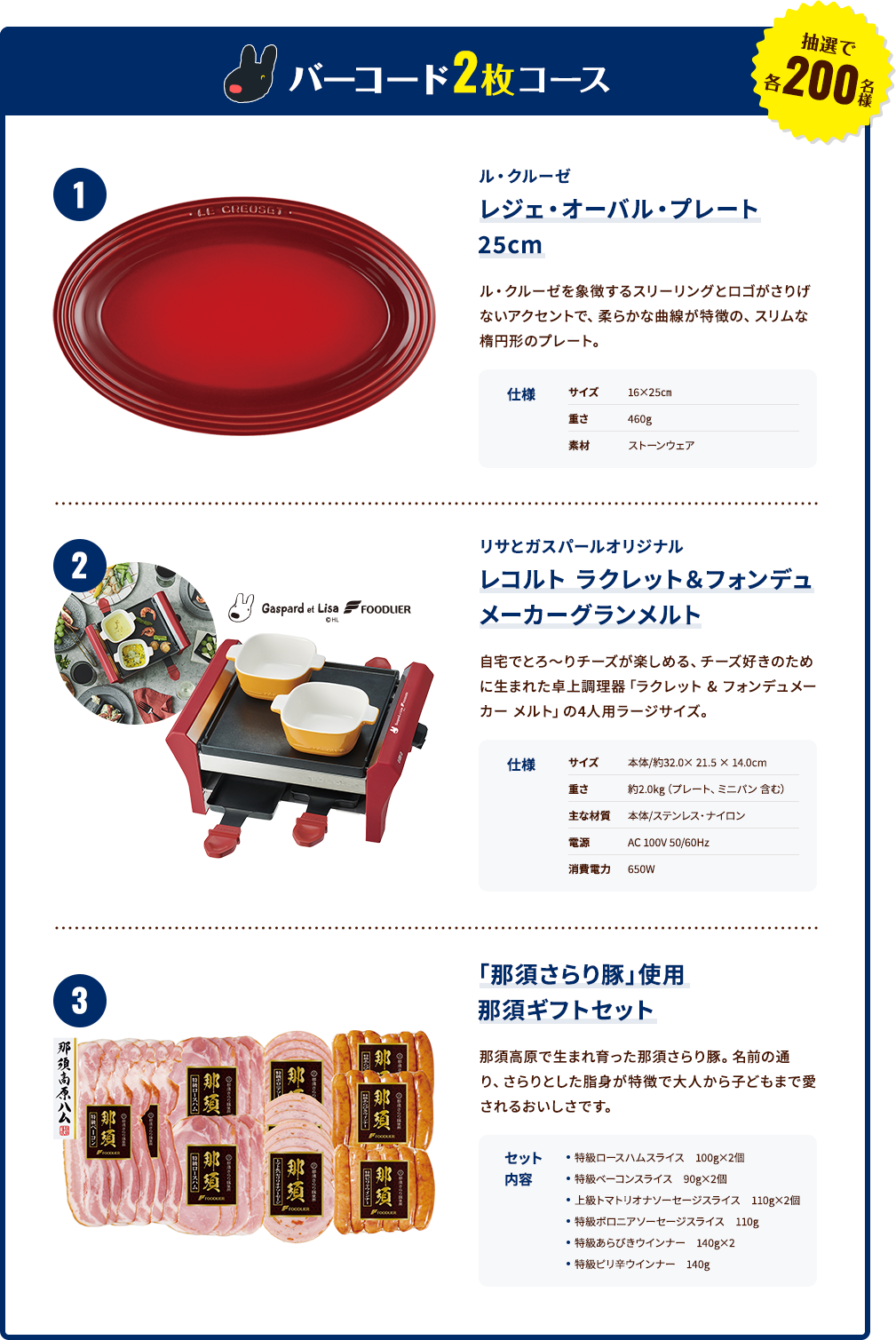 【バーコード 2枚コース】 抽選で各200名様(合計 600名様)