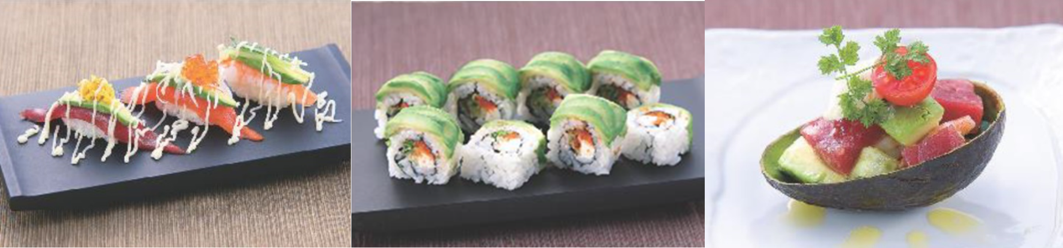 クリーミーな味わいが特徴のメキシコ産アボカドは、日本の食生活にマッチし、またアボカドには健康に良い成分がたくさん含まれていることを知る消費者が増えたことで、アボカドの人気はますます高まっています。メキシコ産アボカドと日本の魚介類、醤油、わさび、酢飯、巻き寿司との絶妙な組み合わせは、寿司好きの間で長年親しまれてきました。