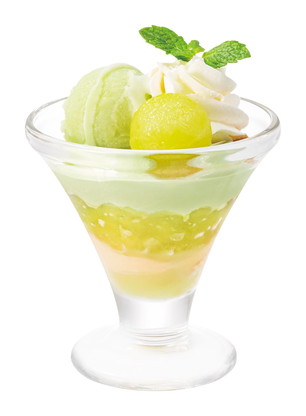 みずみずしいマスクメロンが彩る、淡いグリーンの可愛いパルフェ。フレッシュなマスクメロン、爽やかな風味のメロンソース、ふるふる食感のメロンゼリー、まろやかなマスカルポーネクリーム、すっきりとした味わいのミルクジェラートなどを盛り合わせて、満足度の高いデザートに仕立てました。ほどよいボリュームなので“ザ・サンデーは食べきれない”という方にもぴったりです。