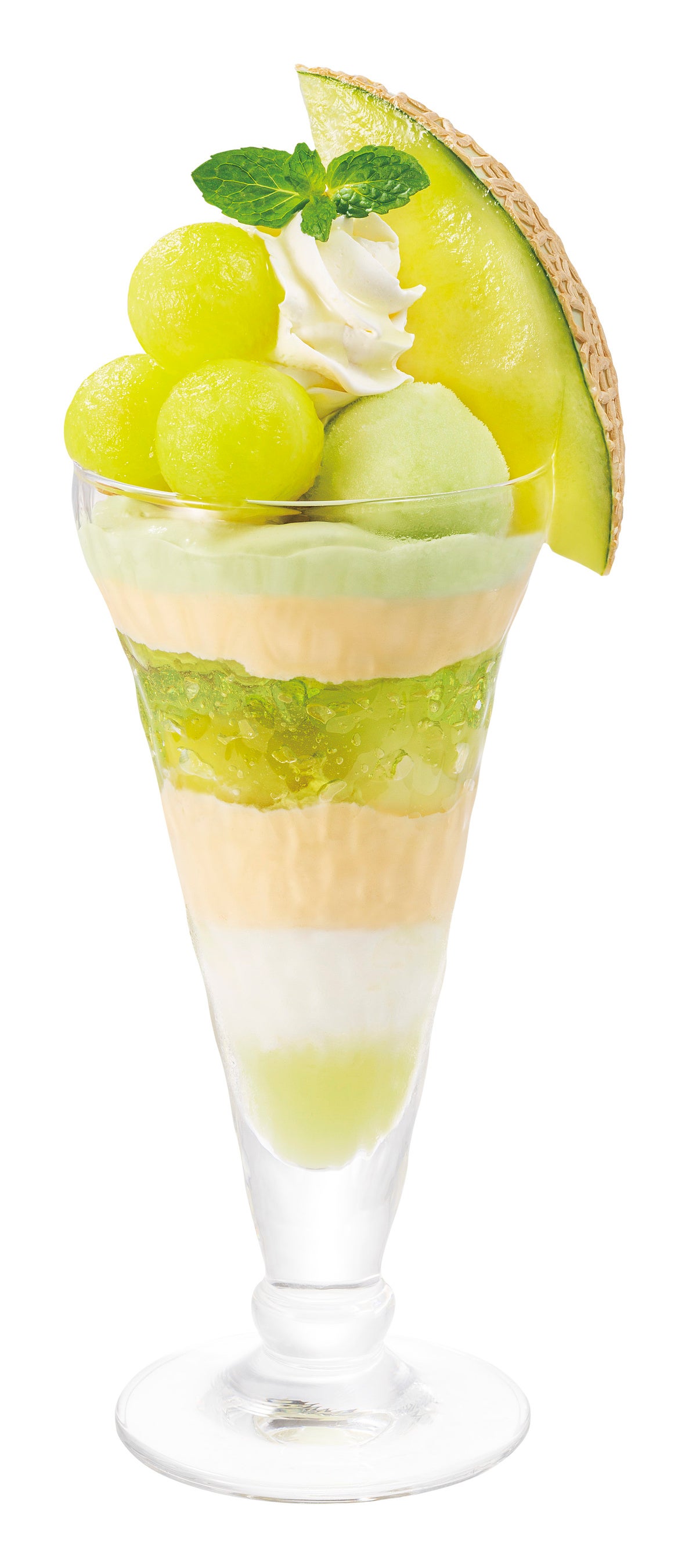 みずみずしいマスクメロンが彩る、淡いグリーンの可愛いパルフェ。フレッシュなマスクメロン、爽やかな風味のメロンソース、ふるふる食感のメロンゼリー、まろやかなマスカルポーネクリーム、すっきりとした味わいのミルクジェラートなどを盛り合わせて、満足度の高いデザートに仕立てました。ほどよいボリュームなので“ザ・サンデーは食べきれない”という方にもぴったりです。