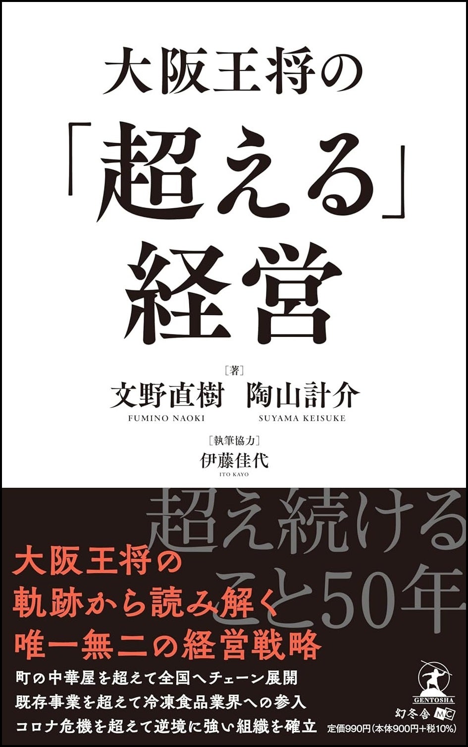 当社は1969年に餃子専門店「大阪王将」を創業。その後、外食と食品の「両輪事業」を展開し、今年55周年を迎えます。本書の執筆は、この節目の年に、従業員に対し当社の歩みや経営戦略への理解を深めてもらおうとスタートした企画でしたが、一般の方々にも役立てていただける内容ではないかと考え、出版に至りました。