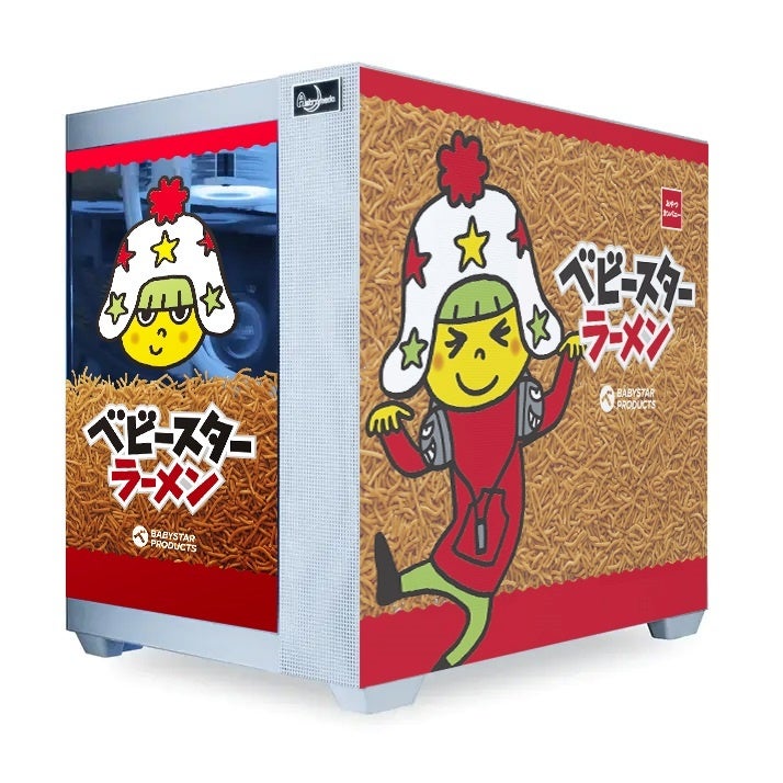 従来の黒い箱型の無機質なデスクトップPCとは異なり、光る装飾を施してインテリアとしても楽しめるゲーミングPCブランド「Astromeda」と「ベビースター」のコラボが実現!ベビースターオリジナルデザインのゲーミングPCを1台限定製造します。