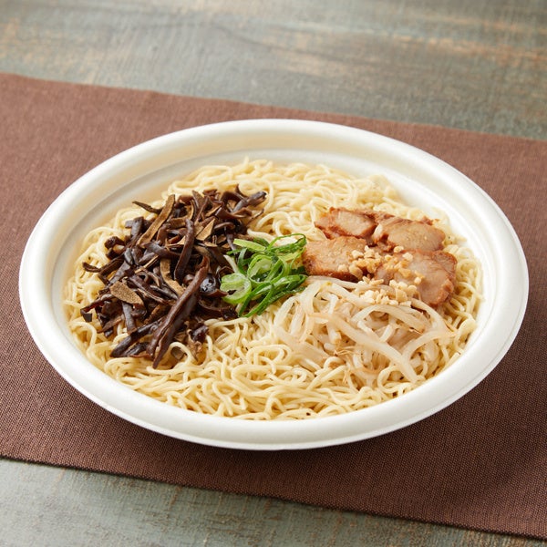 【内容】とんこつスープで味付けをした麺と、味千拉麺の特製「黒マー油」をあわせました。具材にはチャーシュー、きくらげ、もやし、ねぎ、フライドガーリックをトッピング。味千拉麺の特製「黒マー油」を使用し香ばしいにんにくの風味と、とんこつの旨味が感じられる仕立てです。