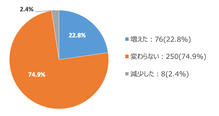 また、「変化があった」(1.3%)と回答した方に、直近1ヶ月でアルコール飲料の注文量がどう変化したかを聞いたところ、「減少した」(80.0%)、「増加した」(20.0%)という結果になりました。