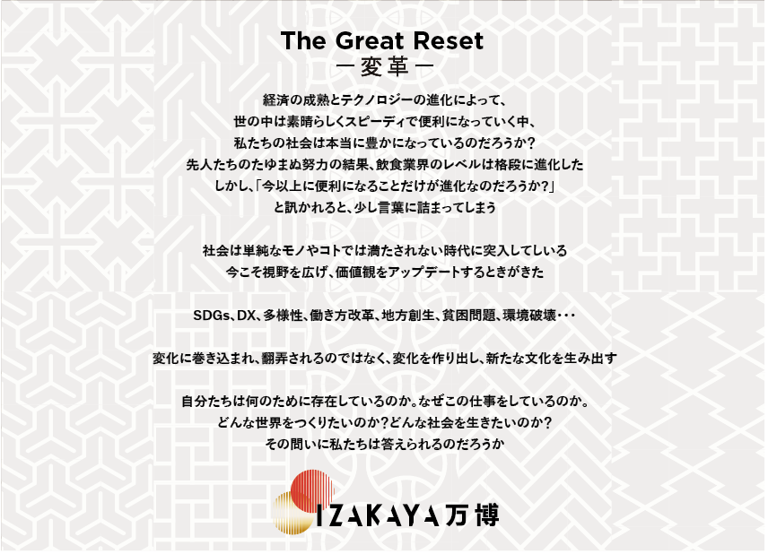 「IZAKAYA万博」とは、“居酒屋から日本を、世界を元気にする”という想いを持つ全国の同志により開催される