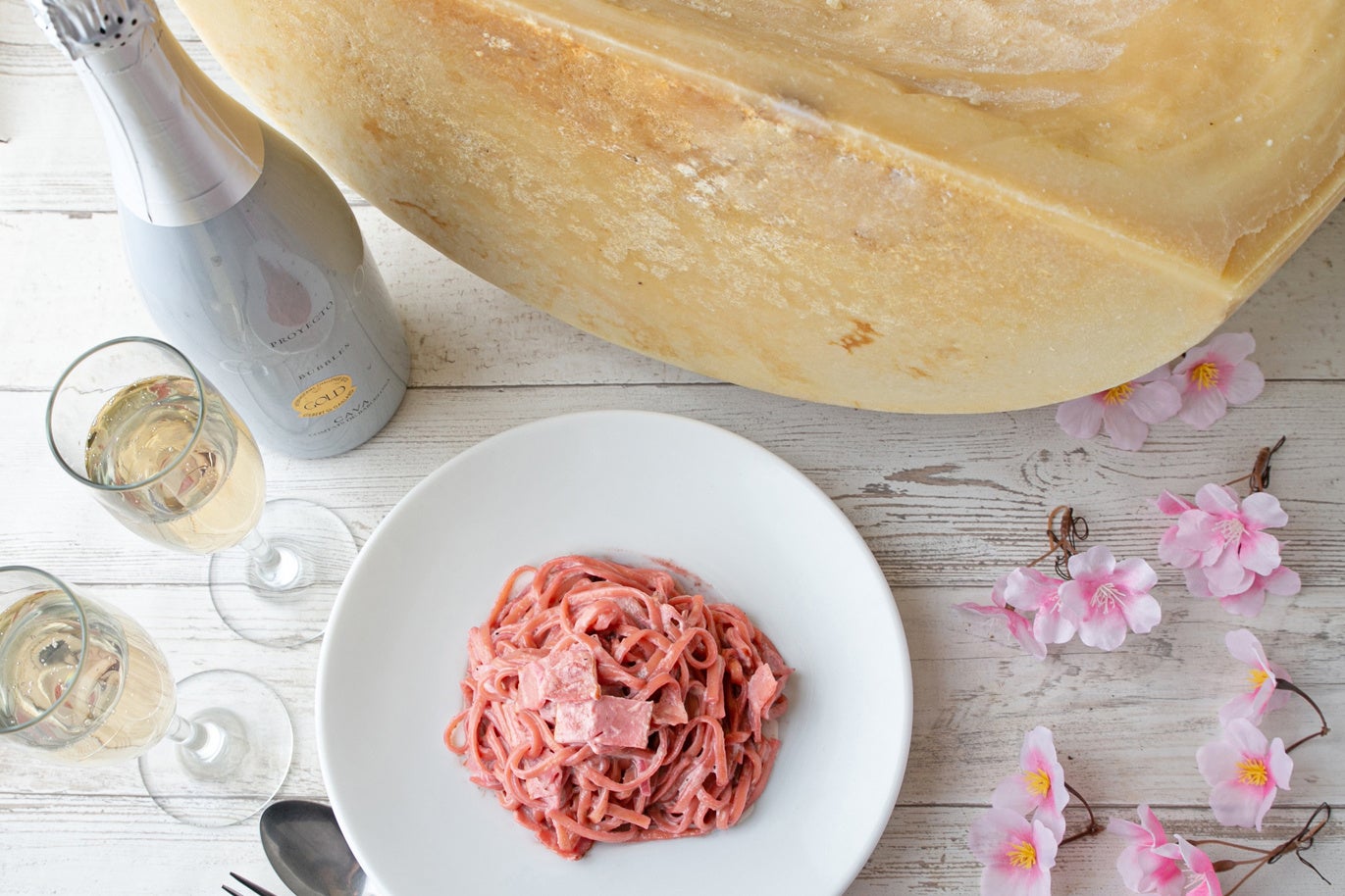 イタリア産チーズを代表する”グラナ・パダーノ”を使用してお客様の目の前で仕上げる、濃厚カルボナーラに”ビーツ”から取れる赤い色素で春を感じるさくら色に染めました。また、ビーツは”食べる輸血”と呼ばれ、「カリウム」・「鉄」・「葉酸」・「ベタイン」・「ベタイン」・「ベタイン」・「ポリフェノール」・「硝酸イオン」などの栄養素が多く含まれ、血液の健康に良い食べ物とされています。