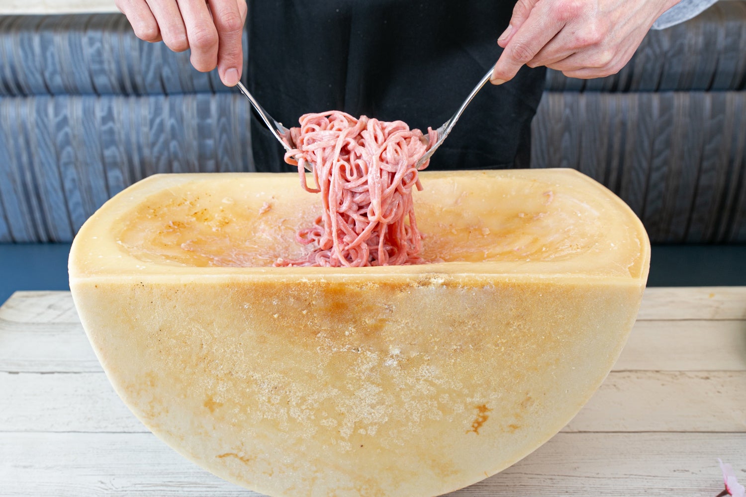 イタリア産チーズを代表する”グラナ・パダーノ”を使用してお客様の目の前で仕上げる、濃厚カルボナーラに”ビーツ”から取れる赤い色素で春を感じるさくら色に染めました。また、ビーツは”食べる輸血”と呼ばれ、「カリウム」・「鉄」・「葉酸」・「ベタイン」・「ベタイン」・「ベタイン」・「ポリフェノール」・「硝酸イオン」などの栄養素が多く含まれ、血液の健康に良い食べ物とされています。