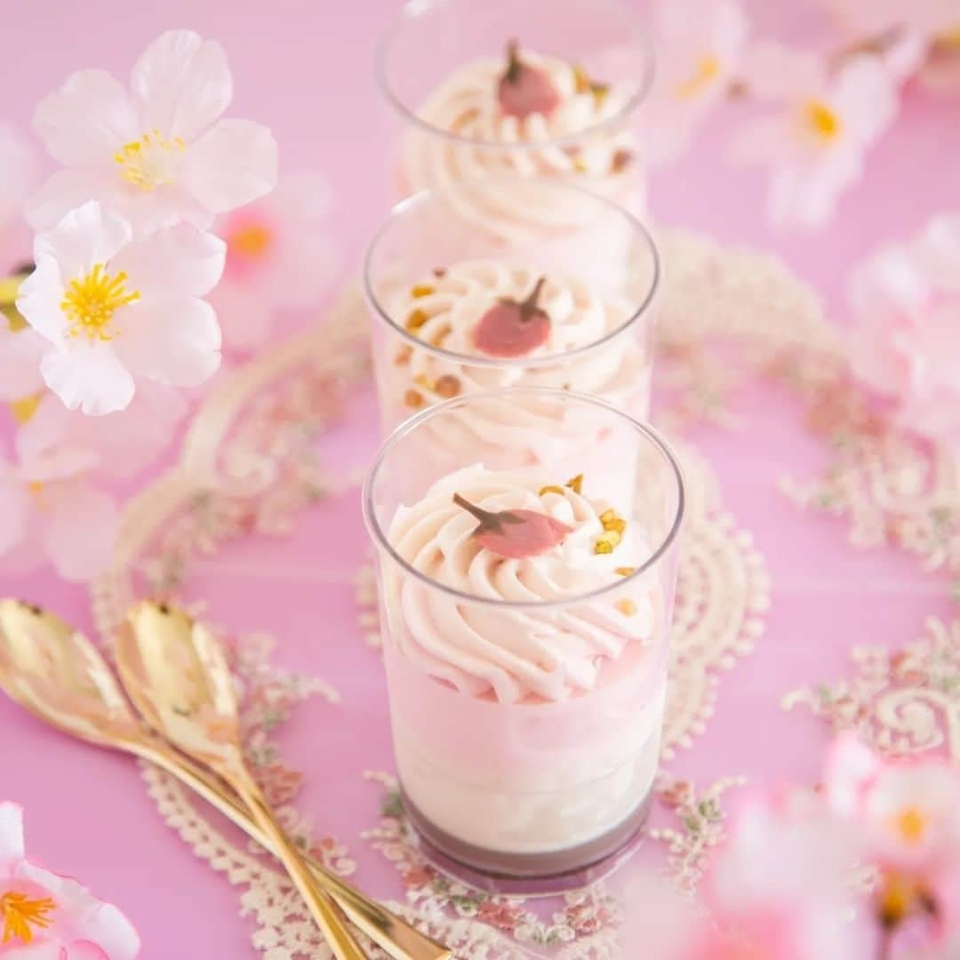 桜とミルクの2層になったプリンはミルクの優しい味わいと桜の味がよく合います。