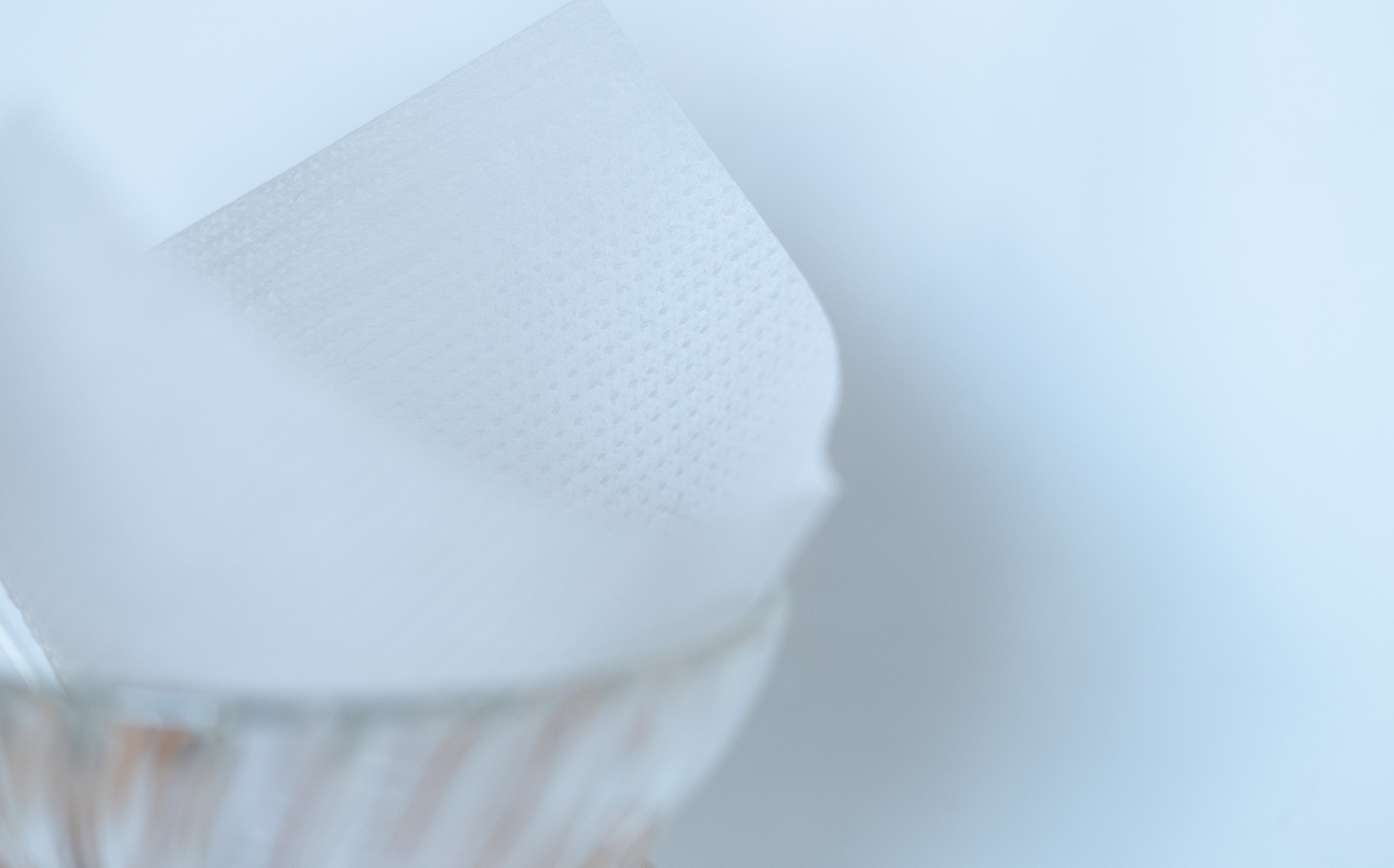 新型のコーヒーフィルターは紙ではなく、美しいNon-wovenコーヒーフィルター。コーヒー愛好家からは既にそのポテンシャルの高さから『紙ではない、神フィルター』との呼び声も。コーヒー市場に革新的な発想