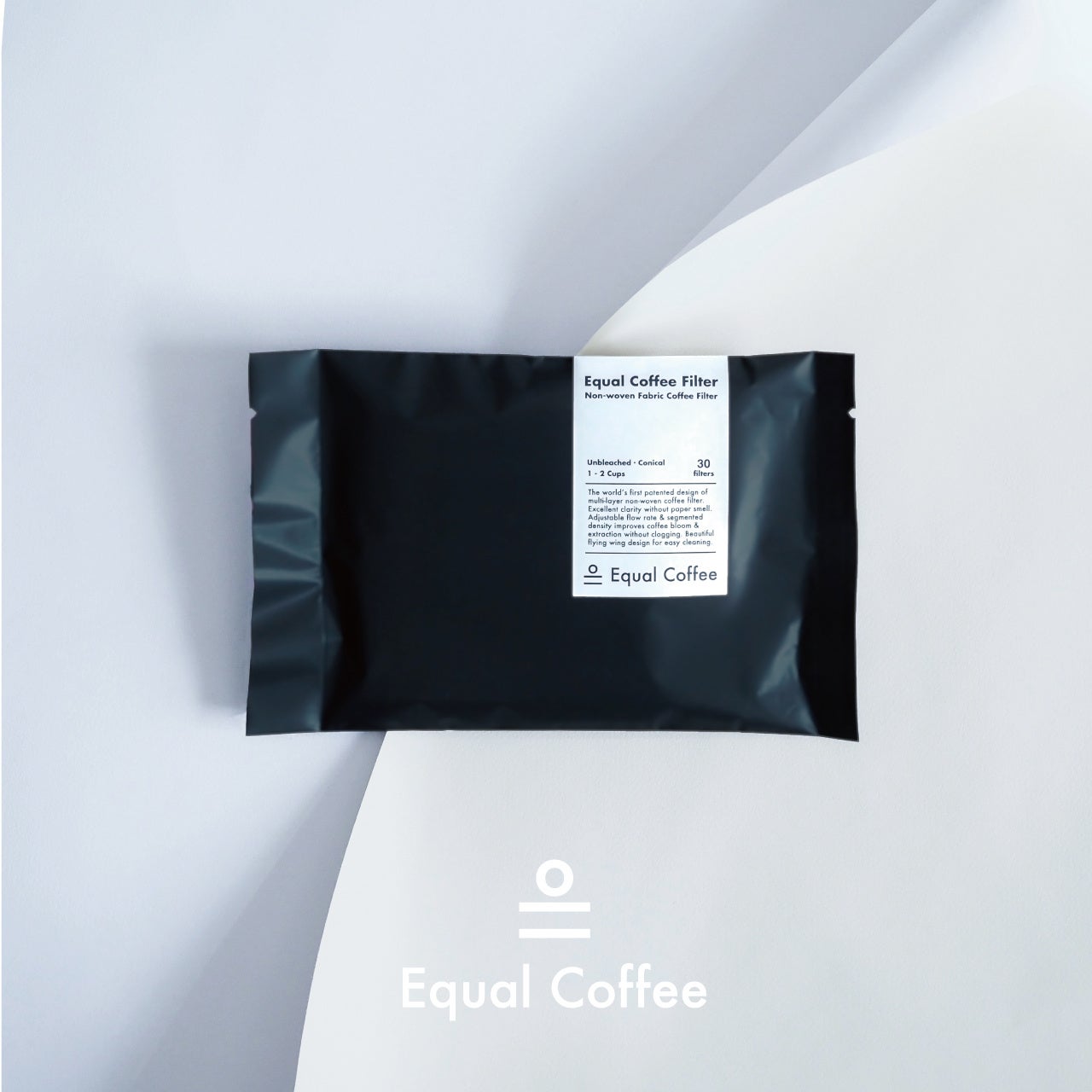 『Equal Coffee Filter』は、小さなコーヒースタジオで数年の研究を経て生まれました。抽出を安定させつつ、豆のクオリティを引き出す抽出を実現するために研究を重ね、特殊技術によるオリジナルの複層式の形状に仕上げました。(特許取得済み)材質はNon-woven fabric(不織布の一種)を採用することで、紙フィルターの製造上において生じる繊維の合わせによる不均一な穴に起因する抽出の不安定性を解消することに成功しました。