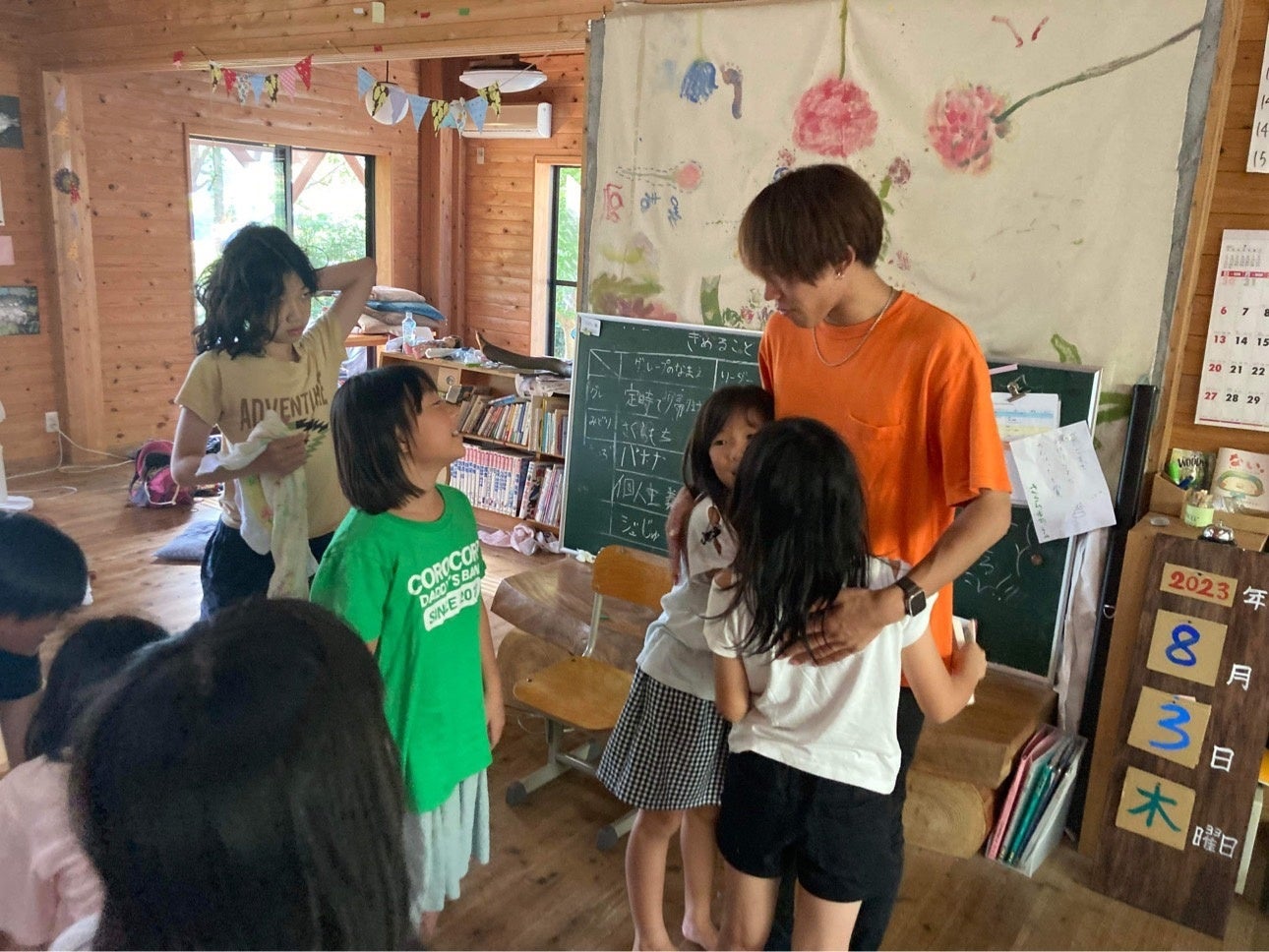 フリースクールに通う子どもたちとの触れ合いの様子。代表は教員免許を取得しており、子どもたちへの講義は得意分野である。