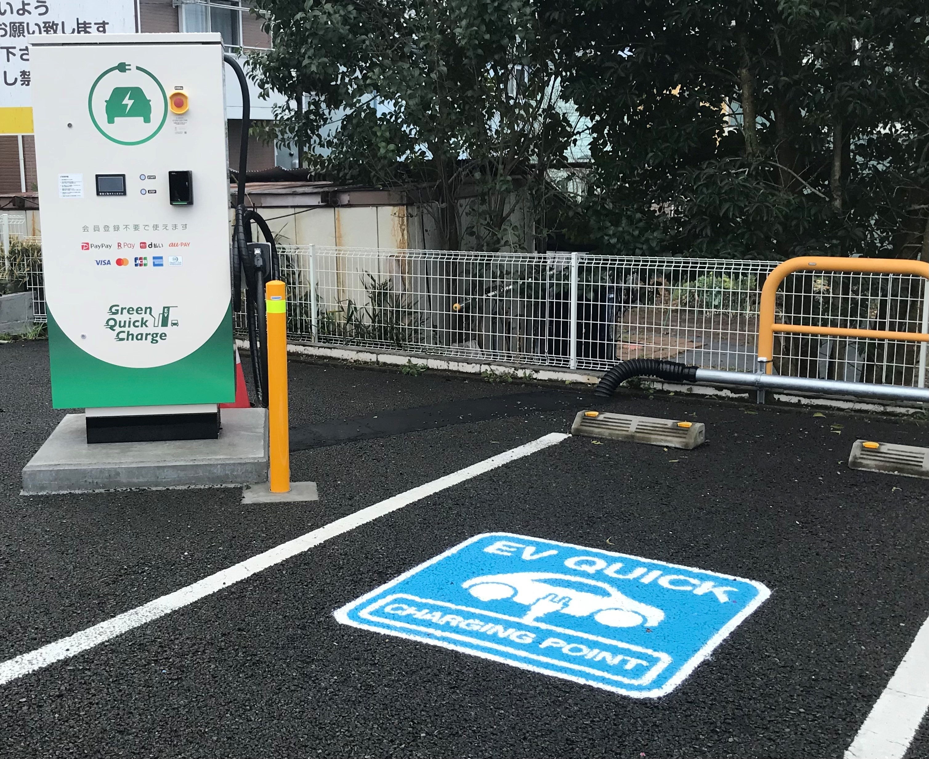 EV用急速充電器は、高速道路のサービスエリアの他、コンビニエンスストアや道の駅にも普及が進んできています。飲食店への設置の利点として、お出かけの途中、お食事をしている間に充電ができるという効率の良さが挙げられます。