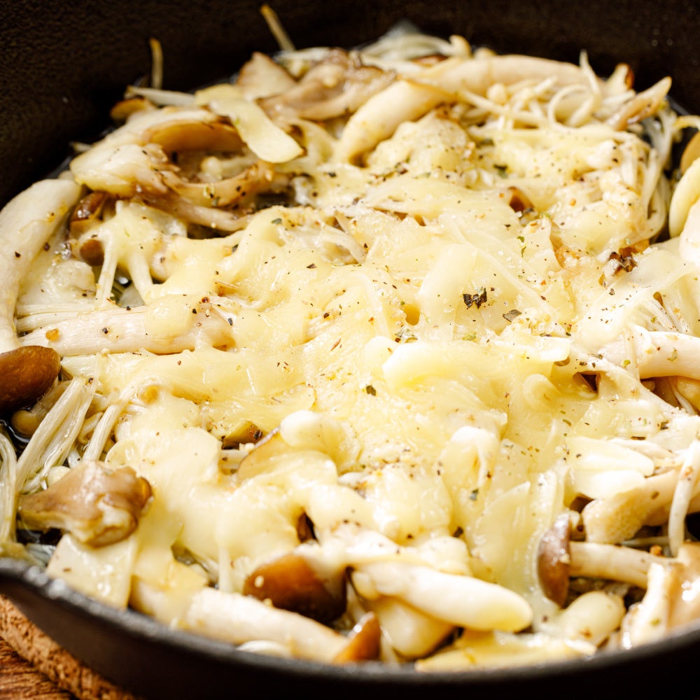 にんにくの香ばしい香りが食欲をそそる、きのこの旨味がぎゅっと詰まった一品です。チーズを入れれば、とろとろで濃厚なアヒージョをお楽しみいただけます。