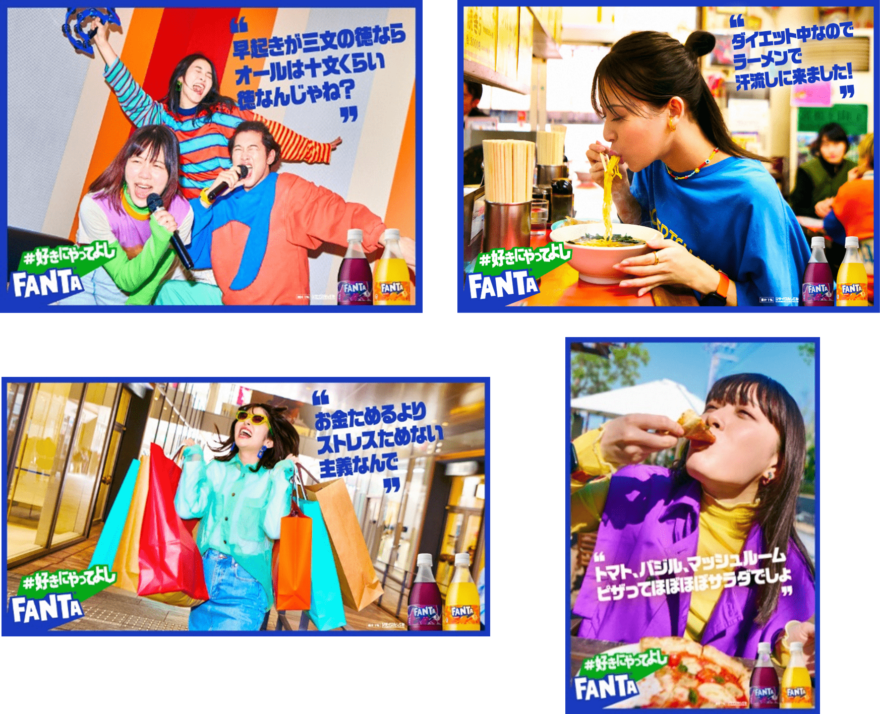 高いタイムパフォーマンスで、情報のキャッチアップや他者との繋がりをマルチにこなしたい現代のティーンは、仕事/学校はもちろんプライベートでも、常に「こうしなきゃ」を気にしています。本当はそんなこと気にせずに、欲求のまま誘惑のまま好きに過ごせたら最高なのに…。「ファンタ」は今年、そんなティーンが抱える、普段は抑えている「好きなようにしたい」葛藤を、イタズラ心たっぷりに後押しし、解放できるような体験を、年間のコミュニケーションを通じて届けていきます。