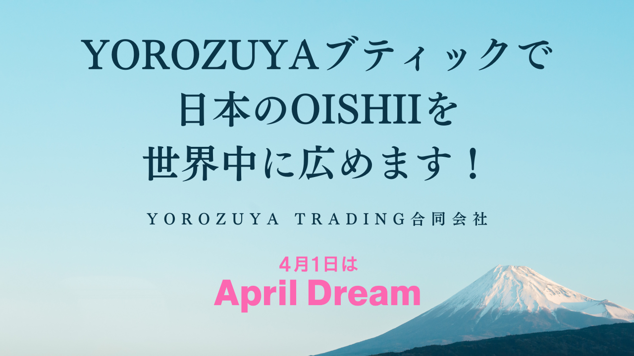当社は、4月1日に夢を発信する日にしようとするApril Dreamに賛同しています。このプレスリリースはYOROZUYA TRADING合同会社の夢です。