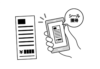 ③レシートの画像を読み込み、 ④「応募シール」を使って抽選に参加すると、