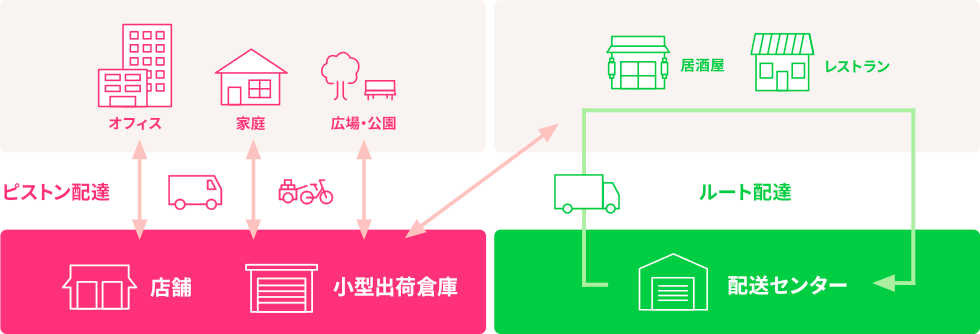 当社は、小型出荷倉庫を増設することでお客様への配達距離を短縮し、軽自動車だけでなくリヤカーや台車等様々なツールによる配達が可能となり、GHG排出などの環境負荷の軽減、また多様な人財が活躍できる体制をつくり、サステナブルな拠点運営を目指しております。