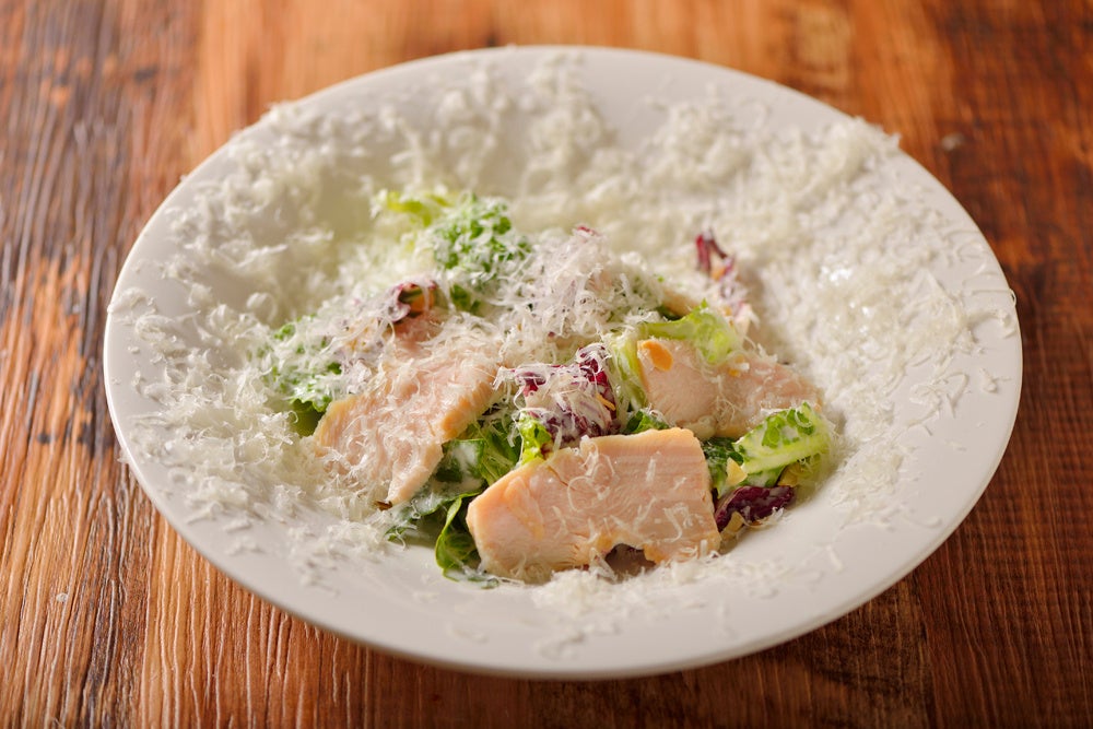 上からかけたパルミジャーノチーズがまるで降り積もった新雪のように見えることから”白雪”と名付けられた当店オリジナルのシーザーサラダ。