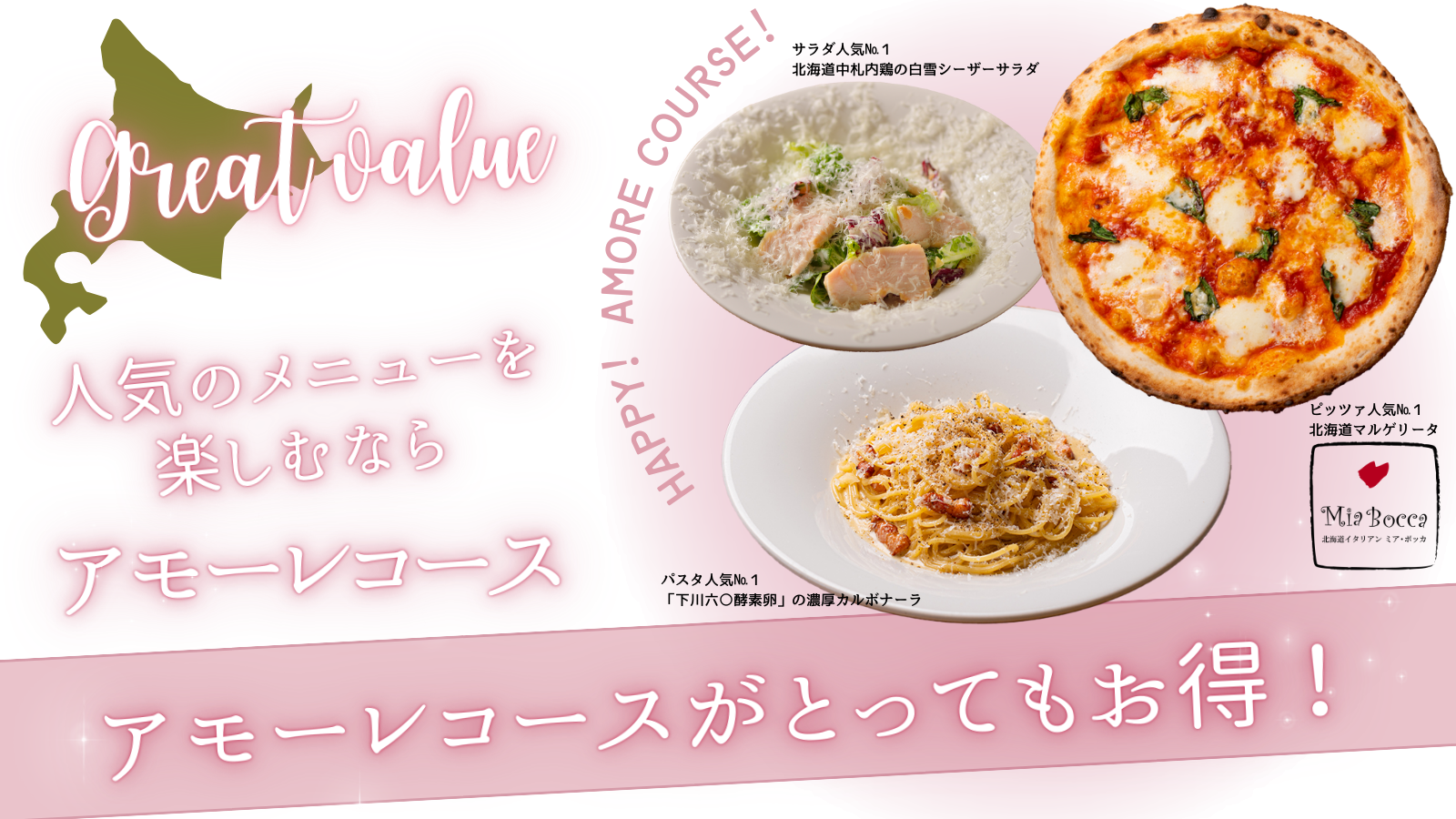 北海道イタリアンミアボッカで美味しく楽しく、そしてお得に外食時間をお楽しみください。