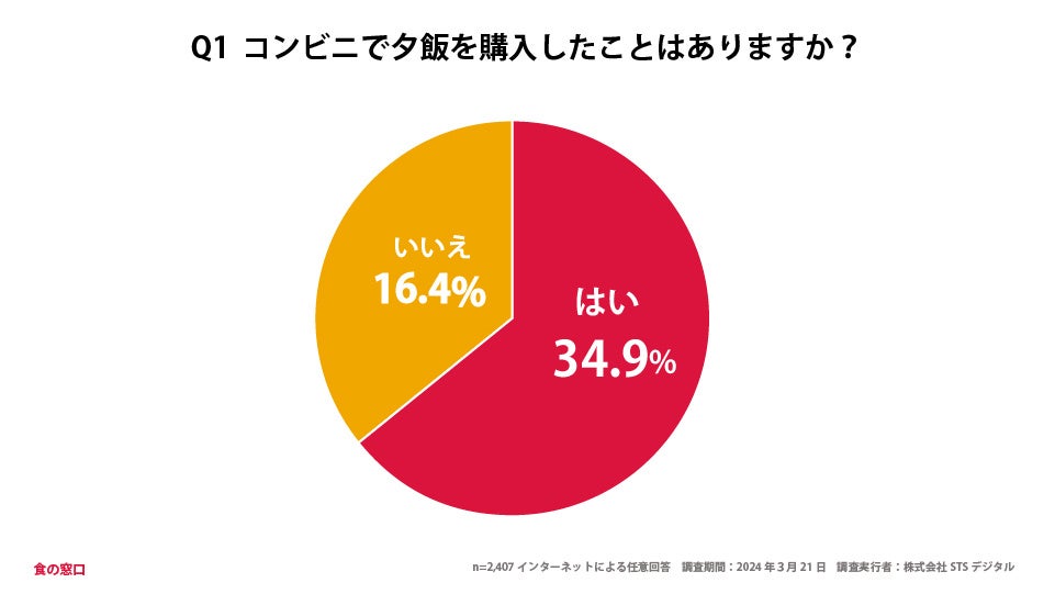 Q1 「はい」と回答した人が64.4%と半数以上の人がコンビニで夕飯を購入したことがあると回答しました。