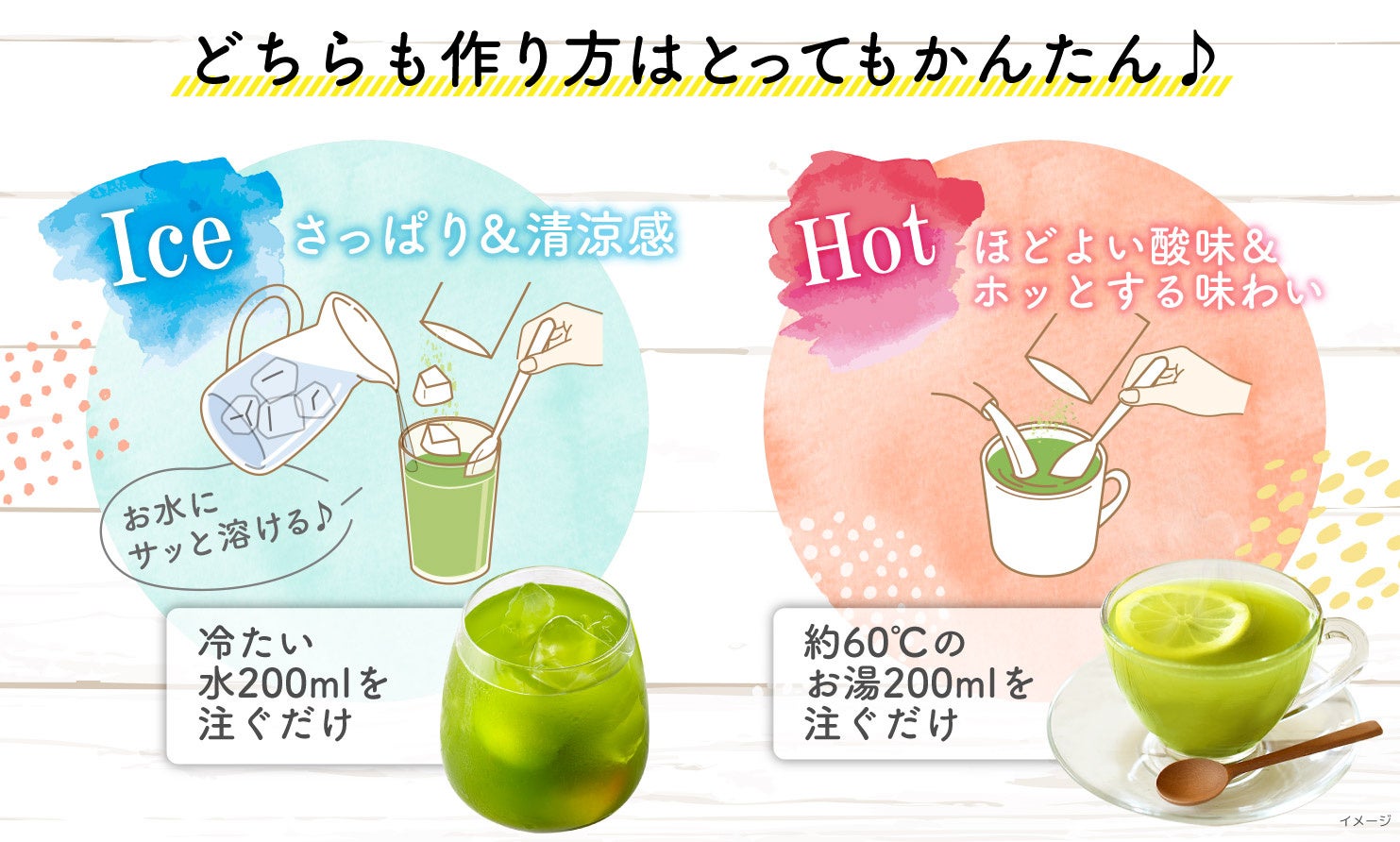 この度、『抹茶&檸檬』につづく待望の第9弾として、華やかな酸味と甘みのあるほっとする味で、暑い夏をさわやかにおいしく過ごし、年間を通して手軽にビタミンCを摂っていただける栄養機能食品『抹茶&青梅』を新発売いたします。
