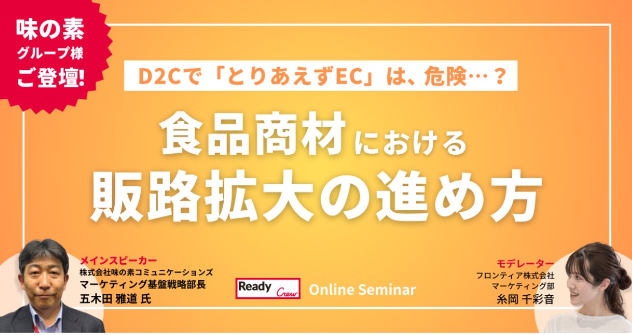 このような声にお答えすべく、食品を中心とした販売促進のプロフェッショナルである株式会社味の素コミュニケーションズ マーケティング基盤戦略部長 五木田 雅道 氏 をゲスト講師に招き、食品商材の売り上げに課題を感じている方へ向けて「ECでの販売を始める際にまず考えるべきこと」や「売り上げが伸び悩んだ商品の分析方法」などを、Q&A形式にてご解説いただくウェビナーを開催いたします。