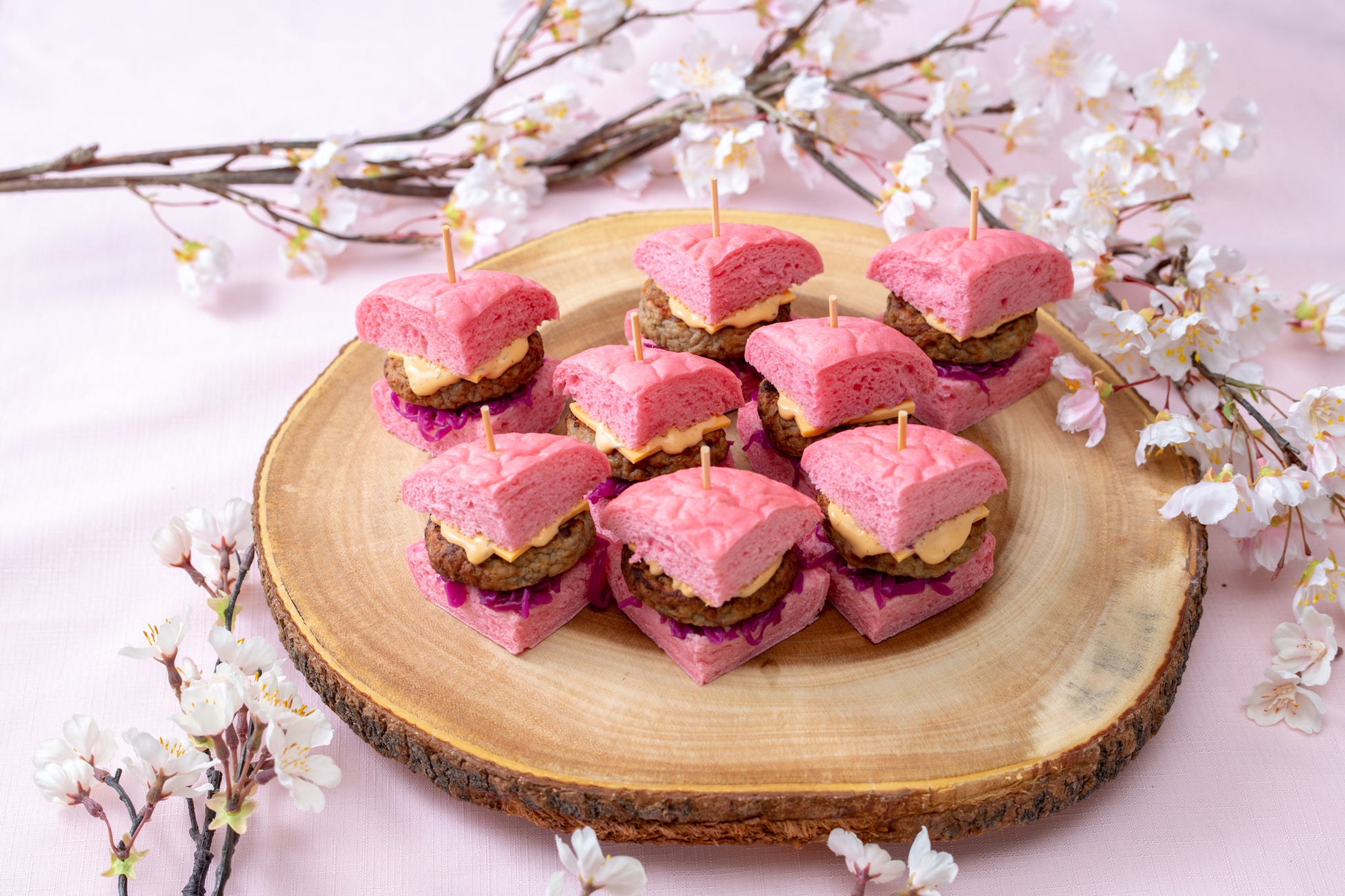 期間中にオーダーメイドケータリングをご利用いただいた幹事様限定で、「桜ピンクの“幸せ”ミニバーガー」をご注文人数分プレゼント致します。