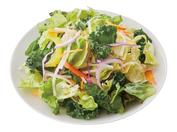 利用者のアイデアを基に追加した「ケール」は他の葉物に比べて味の主張が強いため、カットサイズと量を調整しました。その結果、全体の味と色味のバランスがまとまりました。また、ほかの葉物野菜は大きめにカットしているので、食べ応えのあるサラダとなっています。