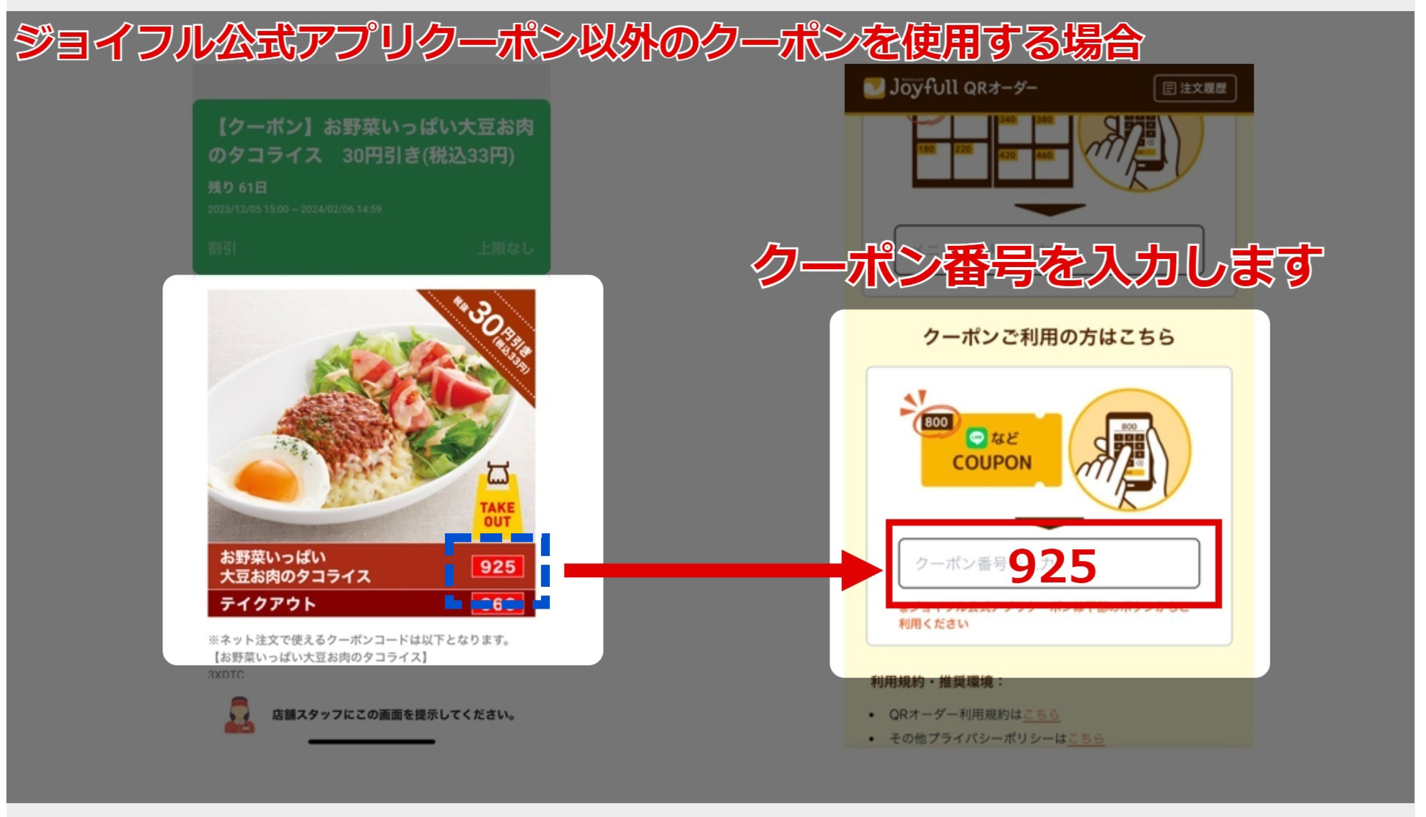 「ジョイフル公式アプリ」以外のクーポンの場合