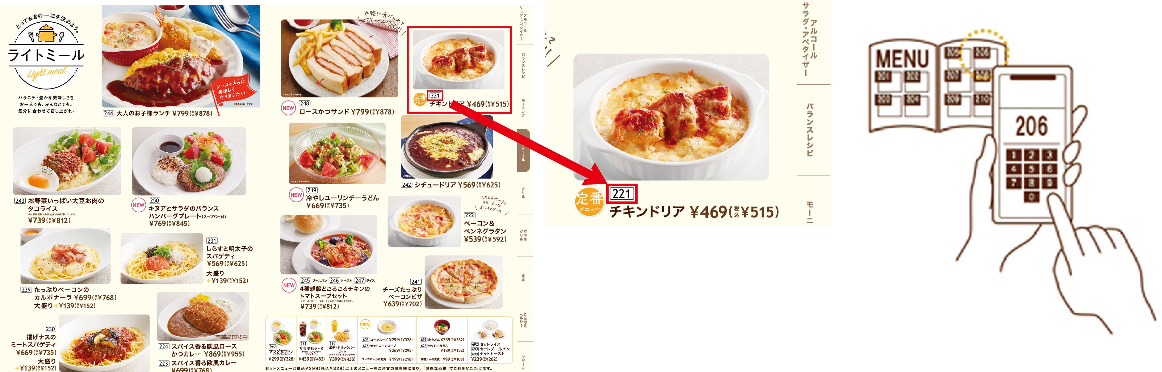 メニュー横に記載している「番号」を入力して送信すれば、注文完了です。