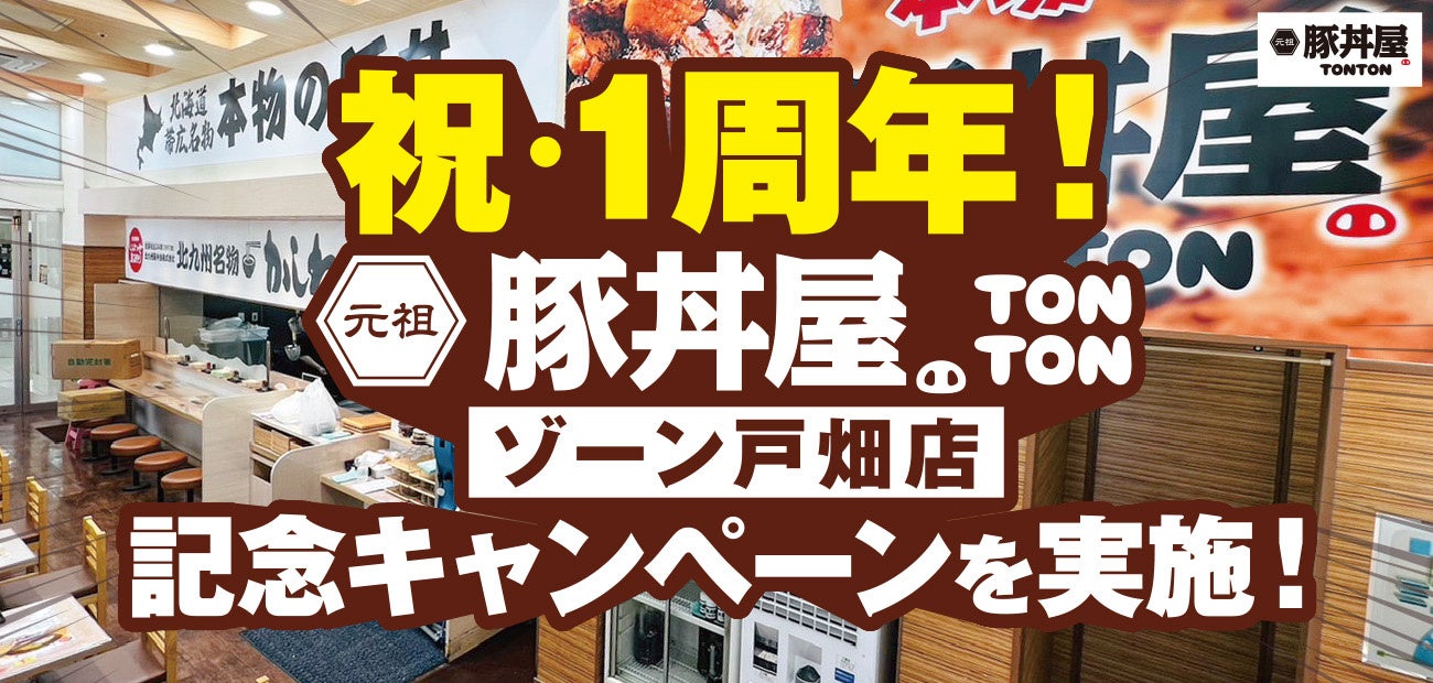 ワンズトライン株式会社(本社:大阪市北区芝田2丁目3番16号、代表取締役:山内仁)が運営する、北海道・帯広伝統の豚丼が人気の「元祖豚丼屋TONTON ゾーン戸畑店」(住所:福岡県北九州市戸畑区牧山新町1−38 ゾーン戸畑店1F TEL:093-287-4197)で、24年4月5日(金)〜14日(日)の期間中、1周年を記念キャンペーンをおこないます。