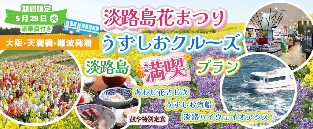 お一人様13,800円!〈大阪駅・天満橋・なんば発着〉5月28日(火) 『淡路島花祭り+うずしおクルーズ』淡路島満喫プラン!!〈添乗員付き〉日帰りバスツアーのオンライン販売を開始しました。