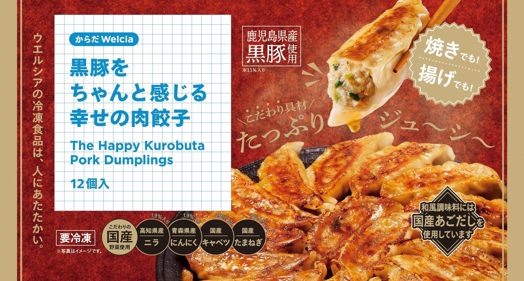 こうしたお客様の声を受け、肉には鹿児島県産の黒豚だけを、野菜には国産野菜だけを使用した具材量多めで食べごたえのある肉餃子を開発しました。国産あごだしが決め手のジューシーな味わいに仕上がりました。