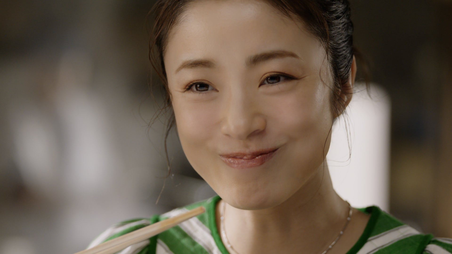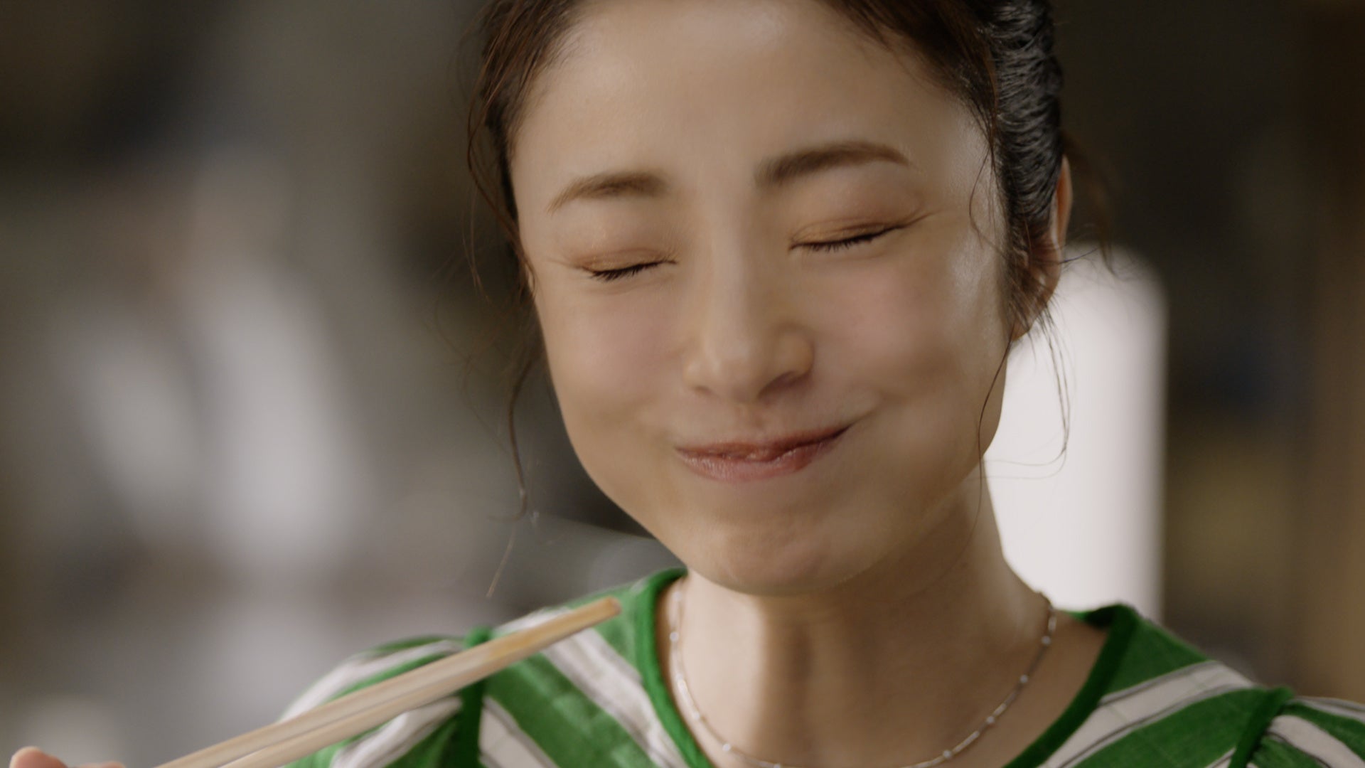 2月の寒い日に撮影は行われましたが、上戸さんの元気な「お願いしま~す!」という挨拶のおかげで、現場が一瞬にして温かい雰囲気に。監督から説明を受けながら、小さな器に乗った麺にだし醤油がかかる映像に、「キレイですね!」と感心の様子。