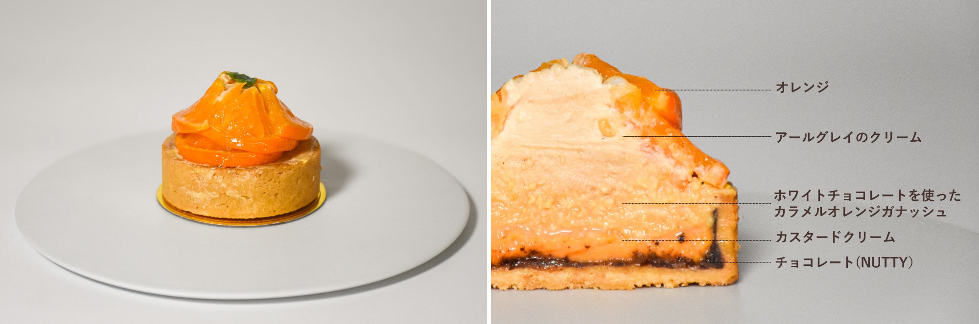 甘酸っぱいオレンジから満足感のあるクリームやガナッシュ、そして余韻に続く柑橘の香りに寄り添う豊かな香りの紅茶の、移り変わる味わいをぜひご堪能ください。