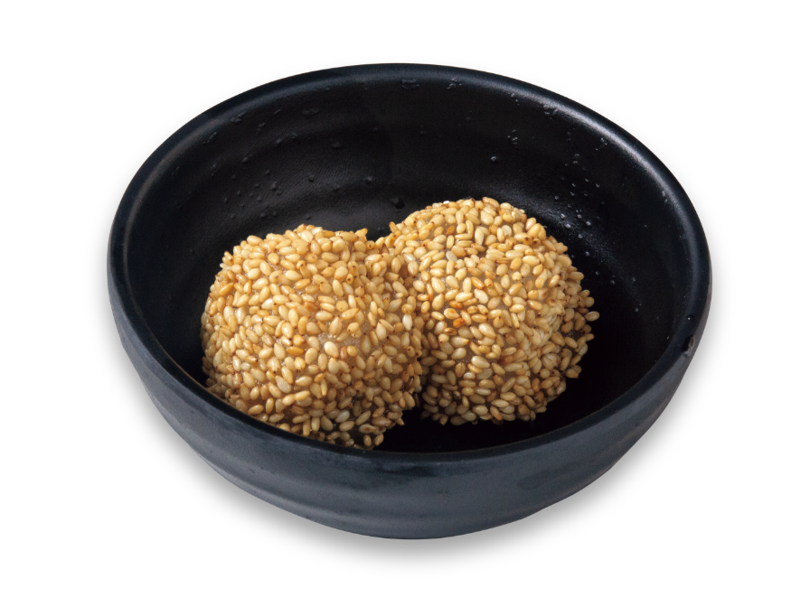 揚げたての胡麻が香ばしい、もっちり食感の熱々のお団子です。