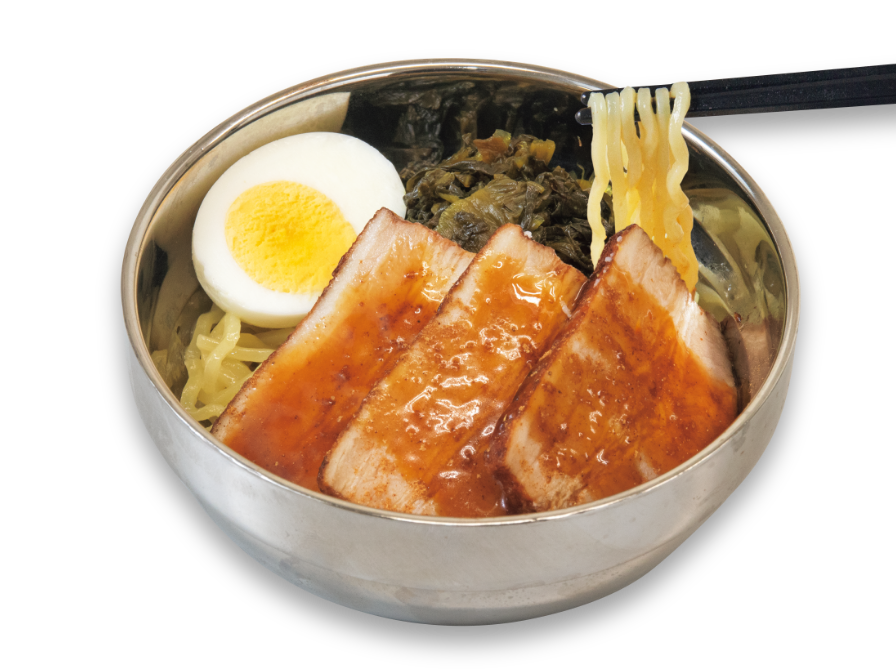 台湾三大飯のひとつである「石焼排骨飯(パイクーハン)」をまぜそば風にアレンジしました。