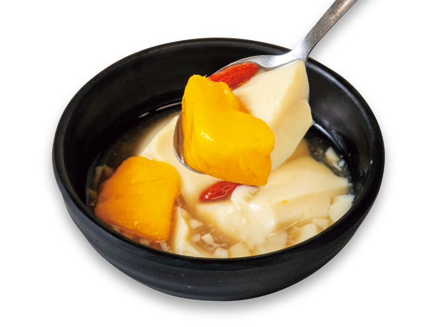 豆花とマンゴーとクコの実で彩りが良く、見た目が華やかな一品です。