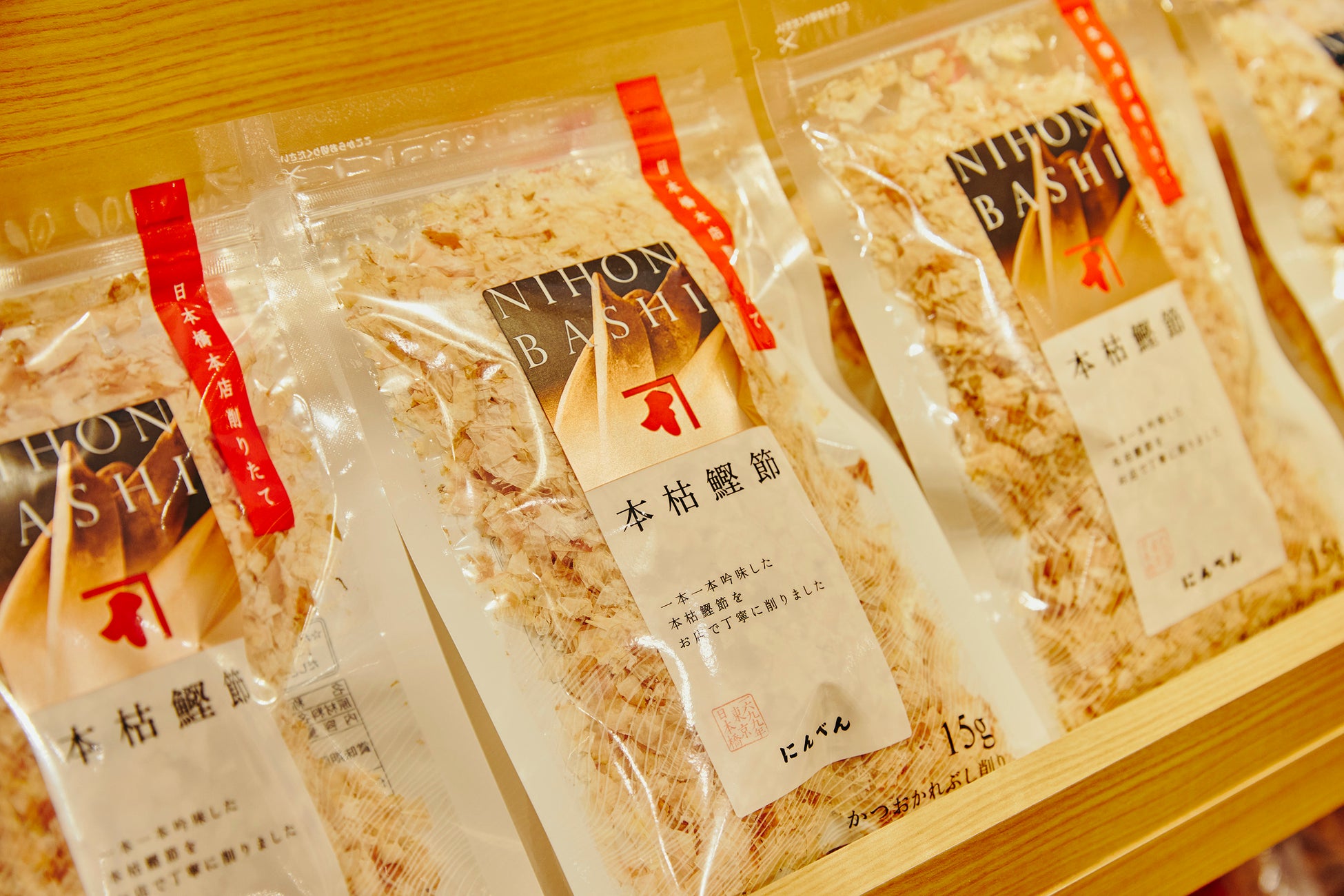 「にんべん 日本橋本店」では、削りたてのかつお節を提供する「日本橋削り場」や、「一汁一飯」がコンセプトの「日本橋だし場 本店」も人気です。
