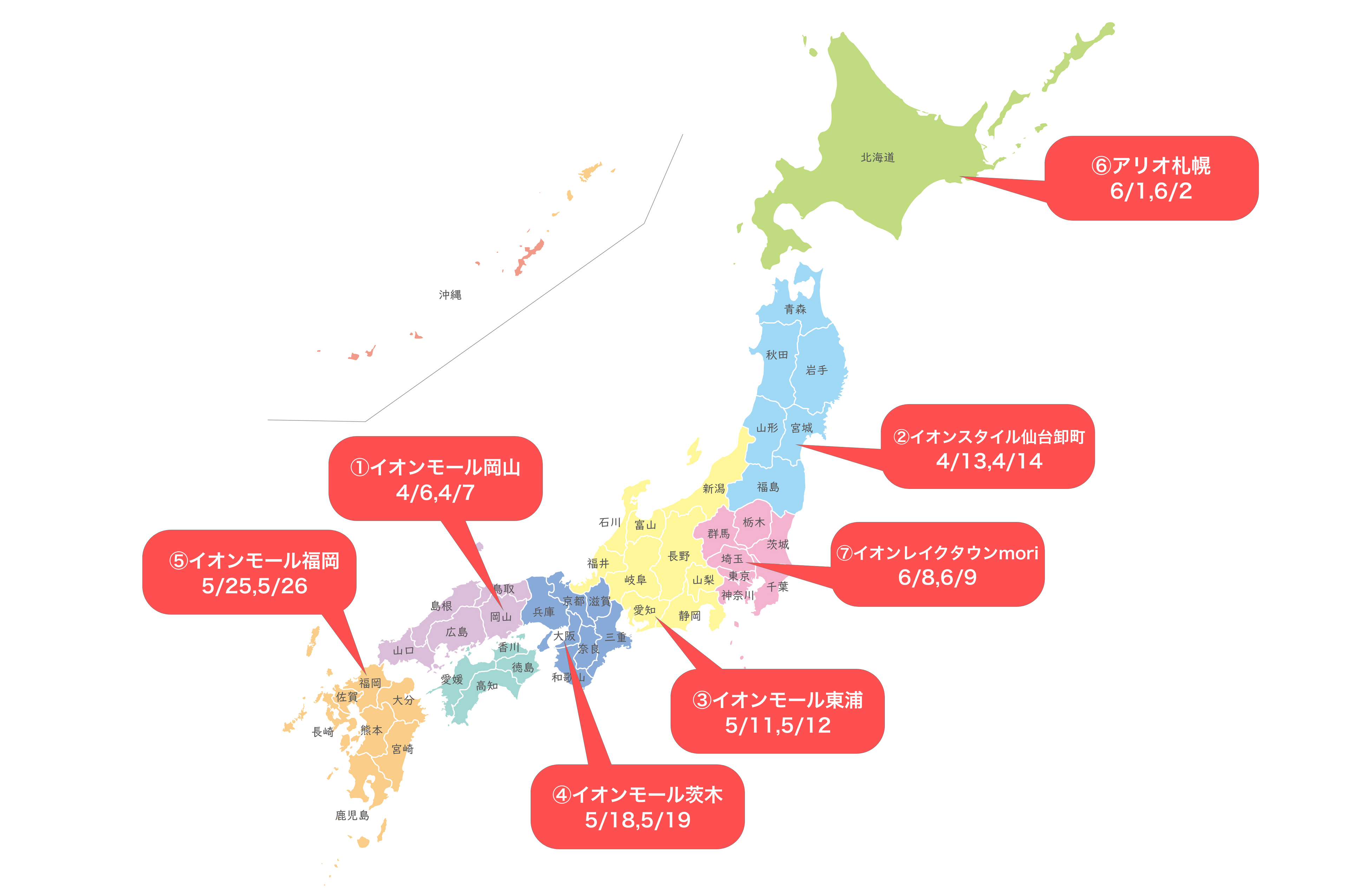 このキャンペーンに合わせて、4月6日(土)より無料でシリアルまぜまぜ体験ができる試食イベント「ごろグラ×シスコーン シリアルまぜまぜ自由研究」を開催。開催場所は岡山県から始まり、宮城県、愛知県、大阪府、福岡県、北海道、埼玉県の合計7か所を予定しています。