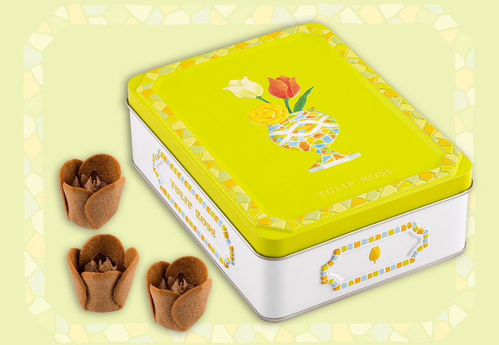 爽やかなライムグリーンが目を引くスペシャル缶。タイルを敷き詰めたようなおしゃれな花瓶や、ぽこぽこと立体的な額縁がとってもキュート。夏を感じさせてくれるフレッシュなデザインになりました。<ショコラティエ>シリーズのスペシャル缶を並べてみても可愛くなりそう!おひとり様3缶まで、毎日なくなり次第終了ですので見つけたらぜひチェックしてみてくださいね。