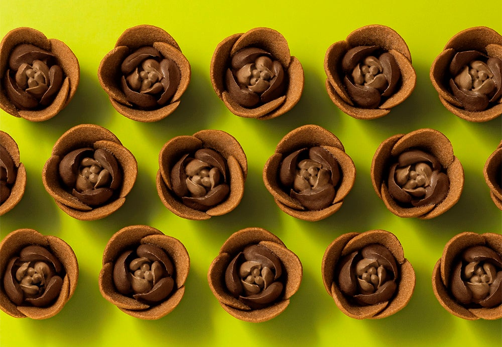 感じてほしいのはショコラの“鮮度”。軽やかなココア・チューリップラングドシャに、ベトナム産トリニタニオ種100%のショコラクリームローズを咲かせました。ピュラトス社のSDGs活動「カカオ・トレース」農園のカカオを収穫後60日以内に加工したショコラを使用することで、新鮮な香りが溢れだします。シェフ金井が「チョコレートにも鮮度があることを感じてほしい」という想いで作り上げた、フレッシュな味わいをお楽しみください。
