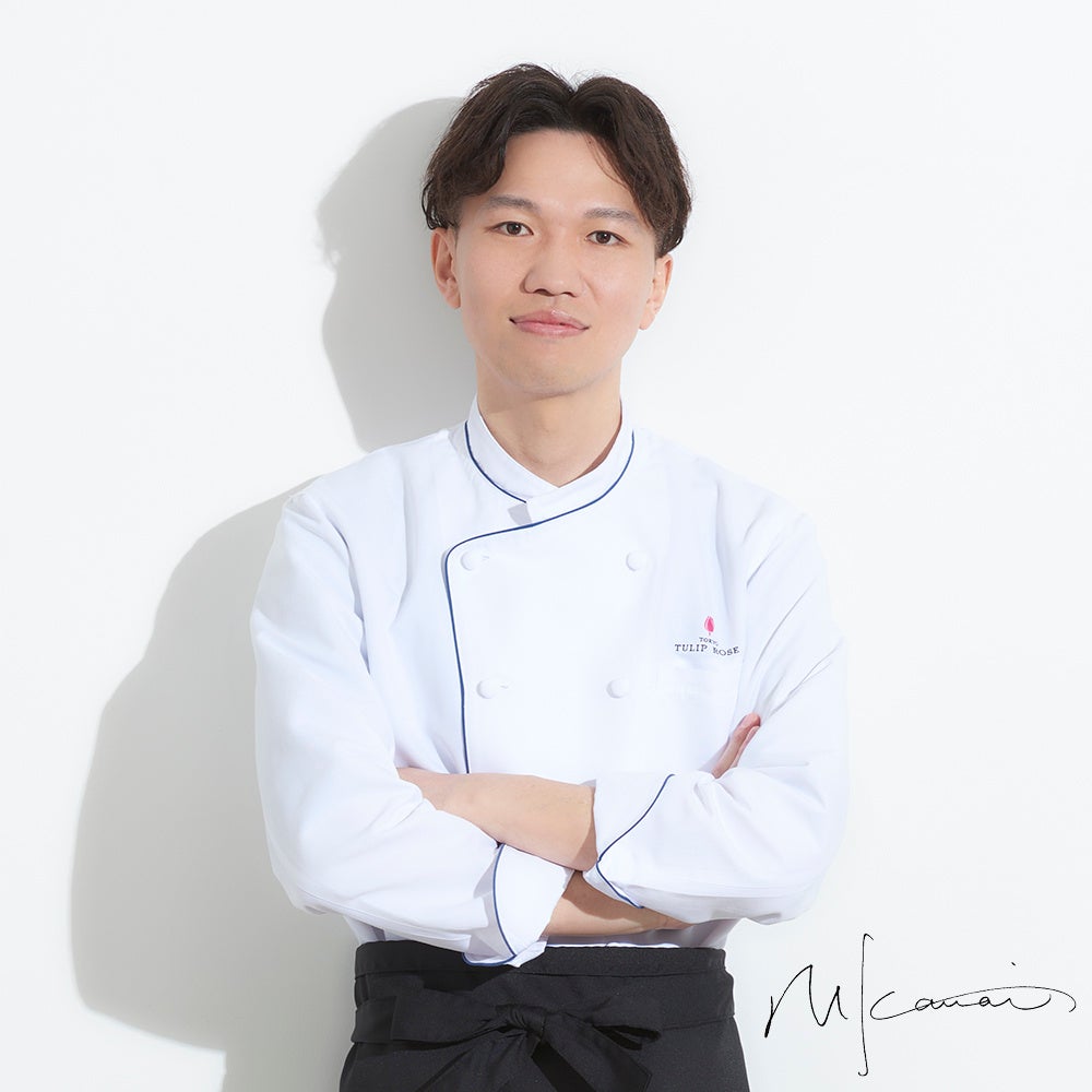 1986年生まれ。専修大学経営学部在学中に東京製菓学校にてお菓子作りを学ぶ。ハイアットリージェンシー東京にて皿盛りのデセールやプチガトーはもちろん、ショコラやウェディングの華やかな細工菓子まで、パティシエとしてあらゆる洋菓子の技術を磨いた。2013年に渡仏。パリにて、シェフ・パティシエをつとめる。2017年に帰国後、集大成として「TOKYOチューリップローズ」を手がける。
