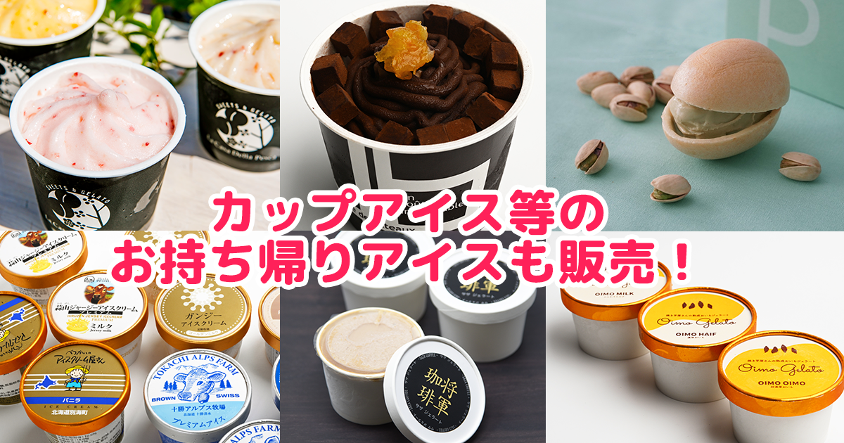 ・テイクアウト:アイスのお持ち帰りをご希望の方には、会場にて「保冷バッグ+ドライアイス」を販売しておりますのでご利用ください。